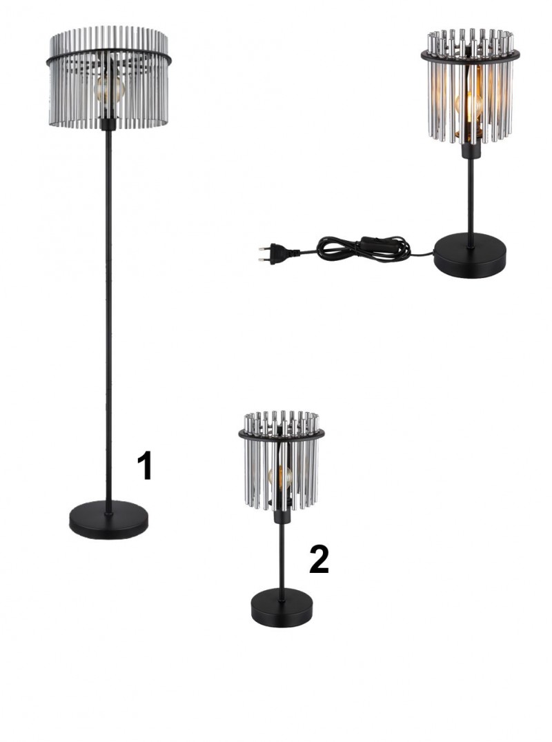1. GL-15698S Stojací svítidlo, kov černý matný, skleněné tyčinky kouřové barvy, kabel PVC černý, nožní spínač na kabelu, Ø:380mm, V:1520mm, délka kabelu 1800mm, bez žárovky 1x E27, max. 60W 230V detail výrobku