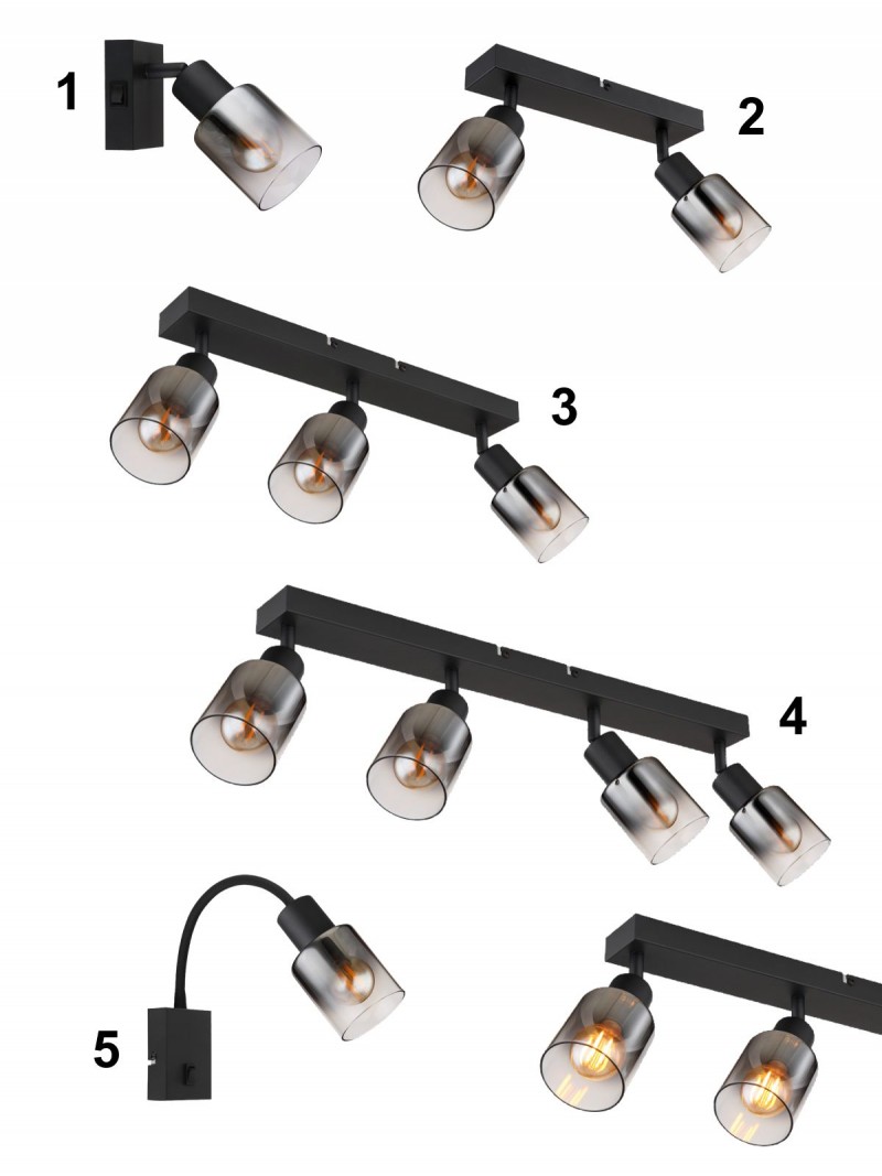 Moderní bodová svítidla vhodná do obývacích pokojů, ložnic, chodeb či pracoven. Jsou vyrobena z kovu v elegantní matné černé barvě a ze skla v kouřové barvě. Stínidla se dají naklápět, takže si snadno posvítíte tam, kam zrovna potřebujete. |