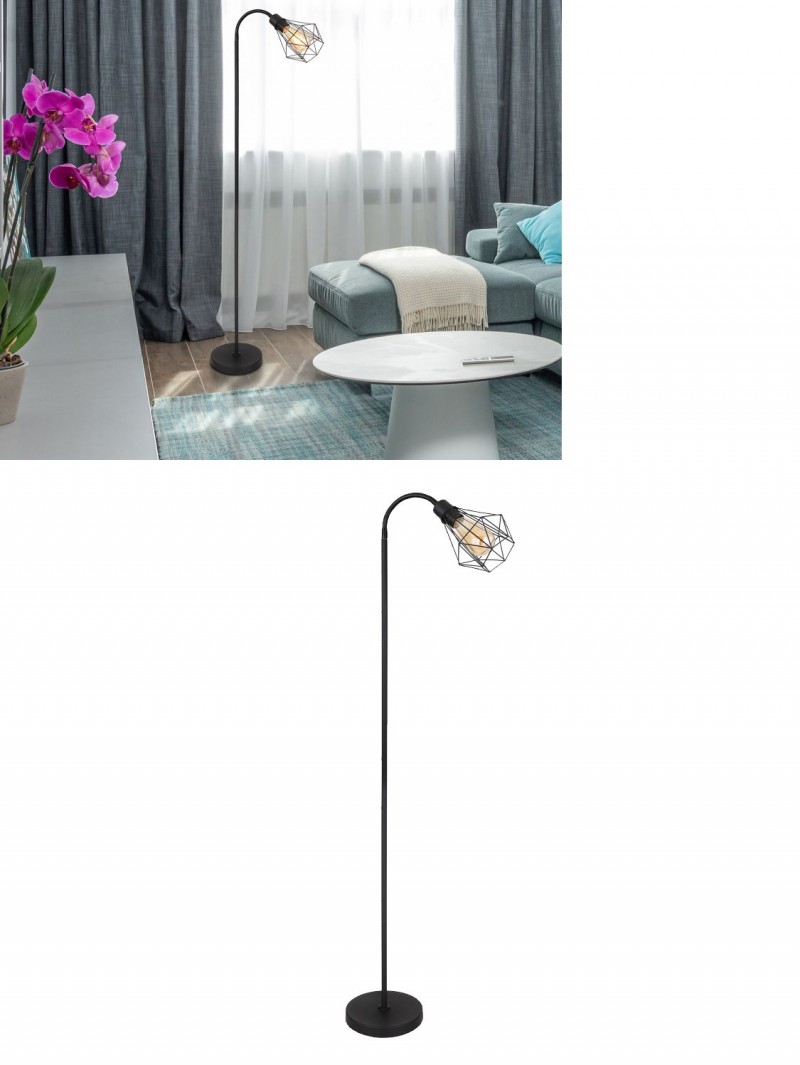 1. GL-15351S Stojací svítidlo kov černý matný, kovová mřížka černá matná, vypínač na kabelu, Flexo, Dx?xV:370x220x1750mm, délka kabelu 1800mm, bez žárovky 1xE27 40W 230V detail výrobku
