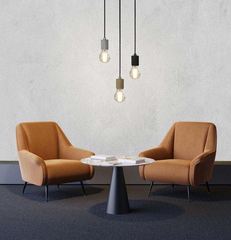 Vysoce kvalitní designová patie vyrobena z hliníku s vroubkovaným povrchem pro žárovky E27, součástí dodávjy je závěs a černý textilní kabel | |