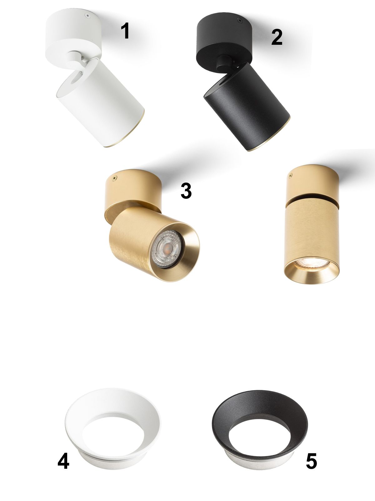 Náklopné válcové svítidlo vhodné pro použití LED žárovek s paticí GU10. Svítidlo se dodává včetně dekorativního kroužku v barvě česaná mosaz. Je možné si dokoupit dekorativní kroužek v barvě bílé nebo černé. |