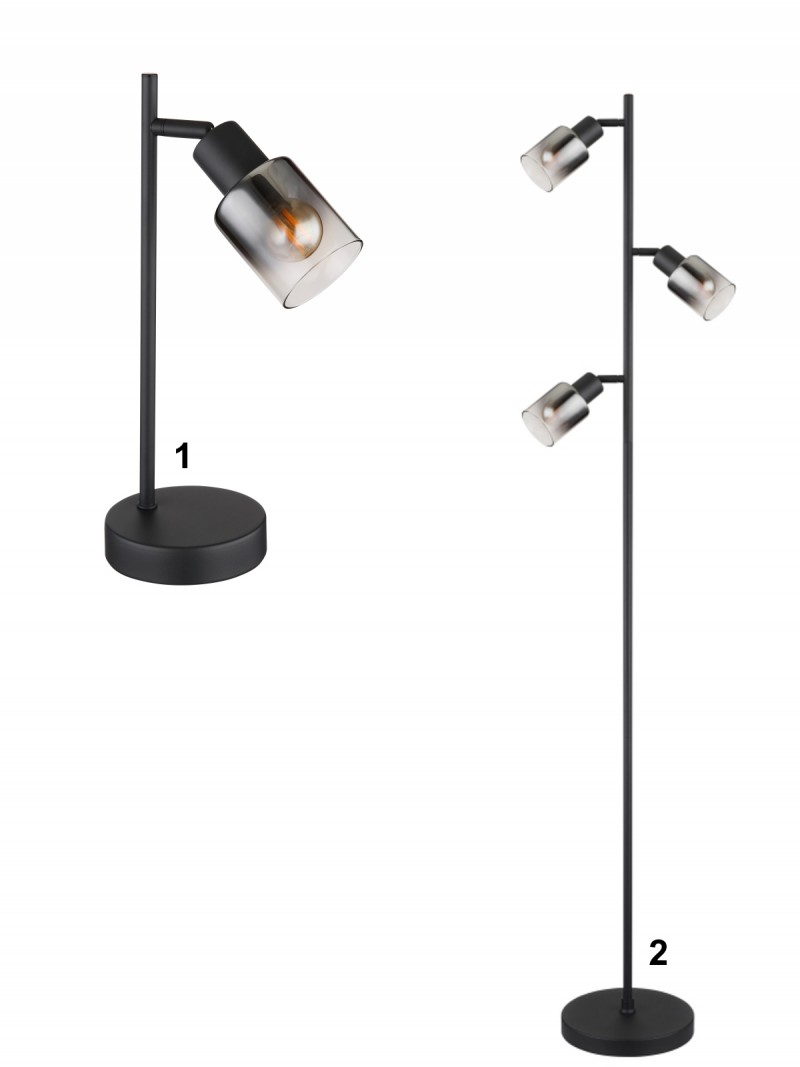 Moderní lampička a lampa vhodná do obývacích pokojů, ložnic nebo pracoven. Jsou vyrobena z kovu v elegantní matné černé barvě a ze skla v kouřové barvě. Stínidla se dají naklápět, takže si snadno posvítíte tam, kam zrovna potřebujete. |