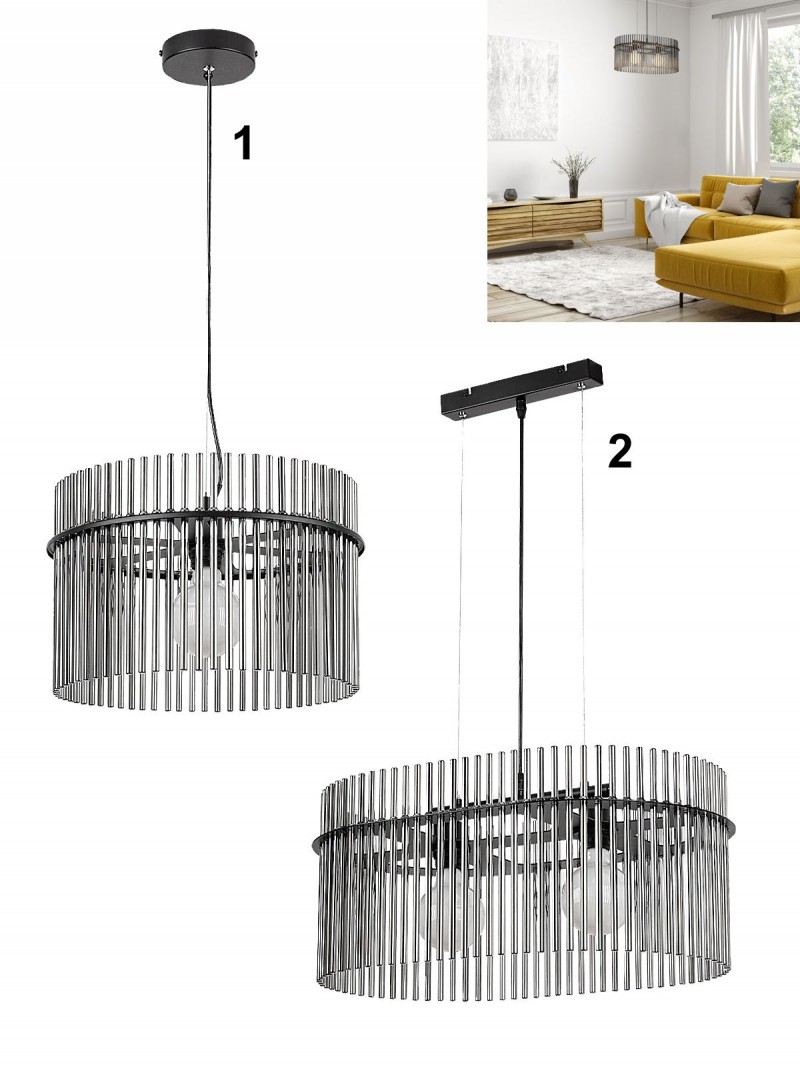 Moderní svítidlo Inesa je vyrobeno z kovu v matné černé barvě a z tónovaných skleněných válců, které tvoří stínidlo obklopující žárovku. Je vhodné do obývacího pokoje, ale také jídelen, kuchyní nebo ložnic. |