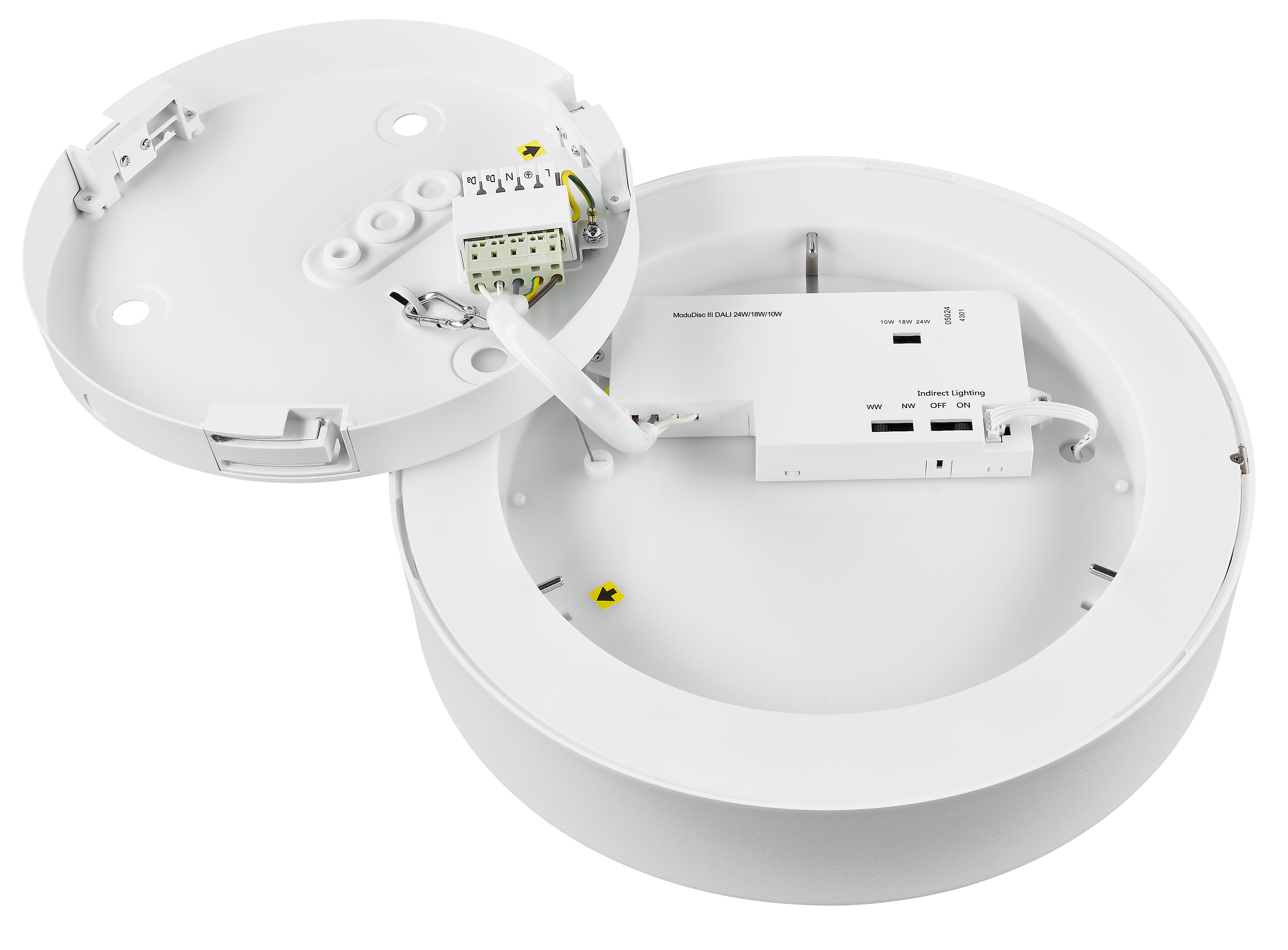 Nástěnné a stropní svítidlo s nastavitelným výkonem a teplotou chromatičnosti 3000/4000K, 10W=1200lm, 18W=2160lm, 24W=2880lm, prům. 320mm, V=64/79mm, bílé | |
