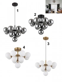 Moderní svítidla vyrobená z kovu a skla. Kovovou základnu zdobí skleněné koule. Svítidla jsou vhodná do obývacích pokojů, ložnic, ale i předsíní apod. |