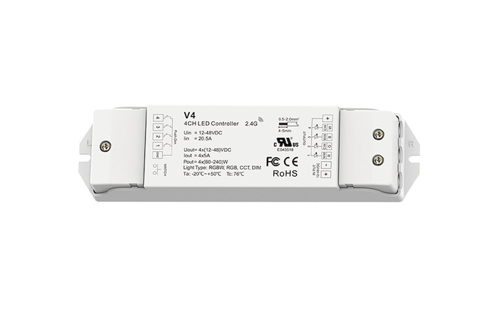 Univerzální přijímač V4 pro Single color, CTA, RGB, RGBW 4x5A - Ovladače a vypínače