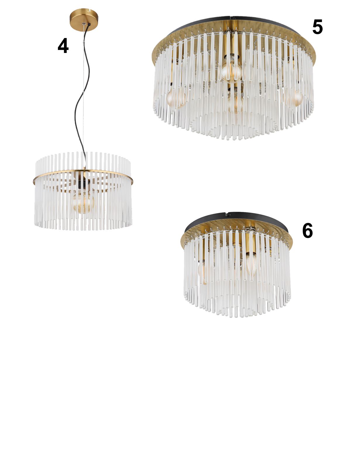 5. GL-15698D1M Stropní svítidlo, kov zlatá barva matná, černá, skleněné tyče bílé, průhledné, ø:500mm, V:250mm, bez žárovek 5xE27,max. 60W 230V detail výrobku