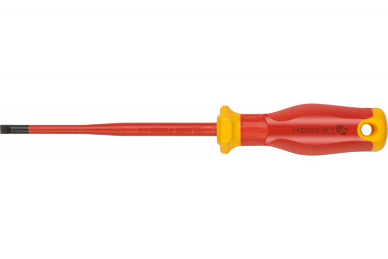 Ploché šroubováky 1000 V, certifikované pro práci pod napětím. Hroty šroubováků oboustranně broušené, vyznačují se sbíhavým a paralelním profilováním. Úzká hřídel umožňuje pracovat s hlubšími šrouby a vruty.