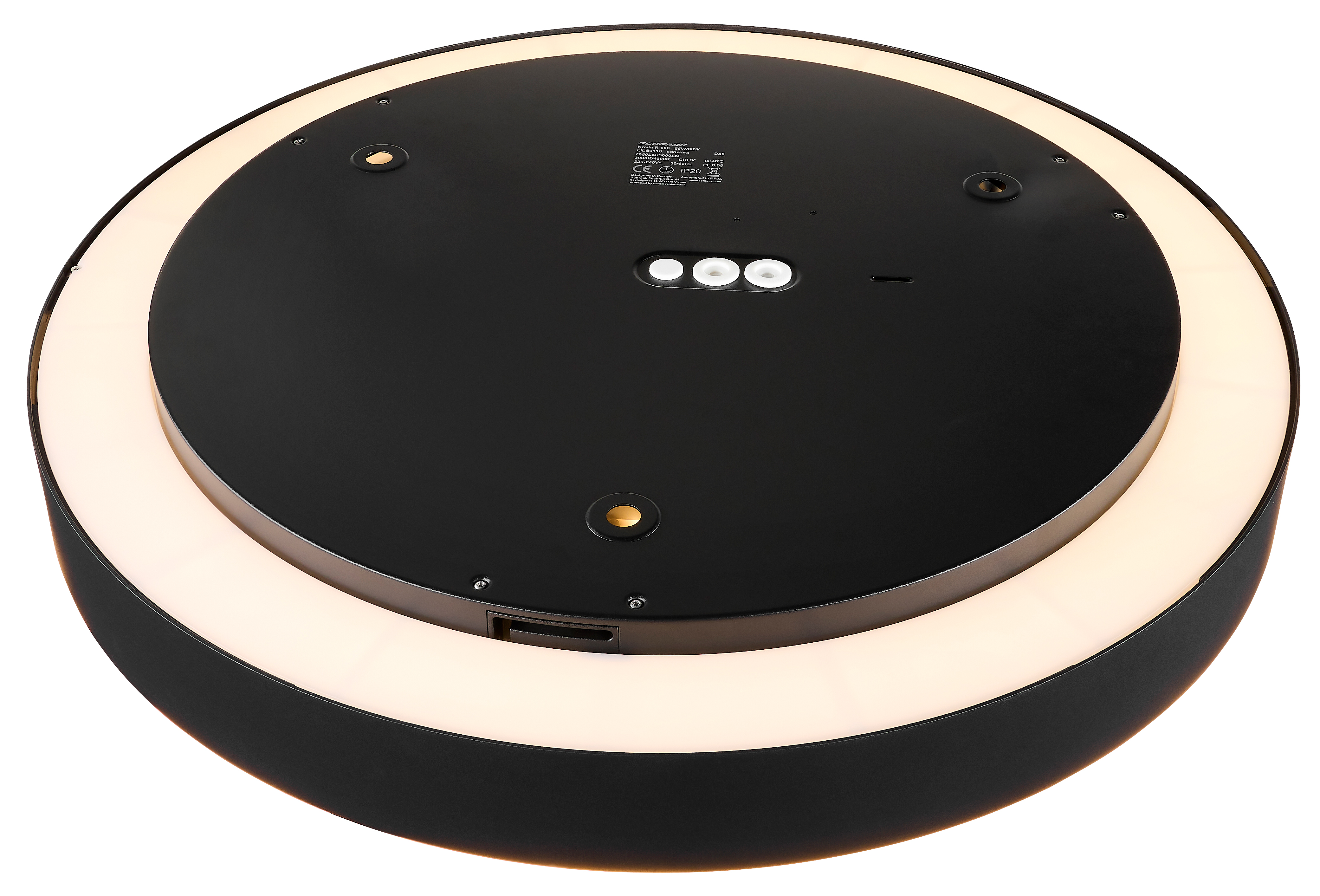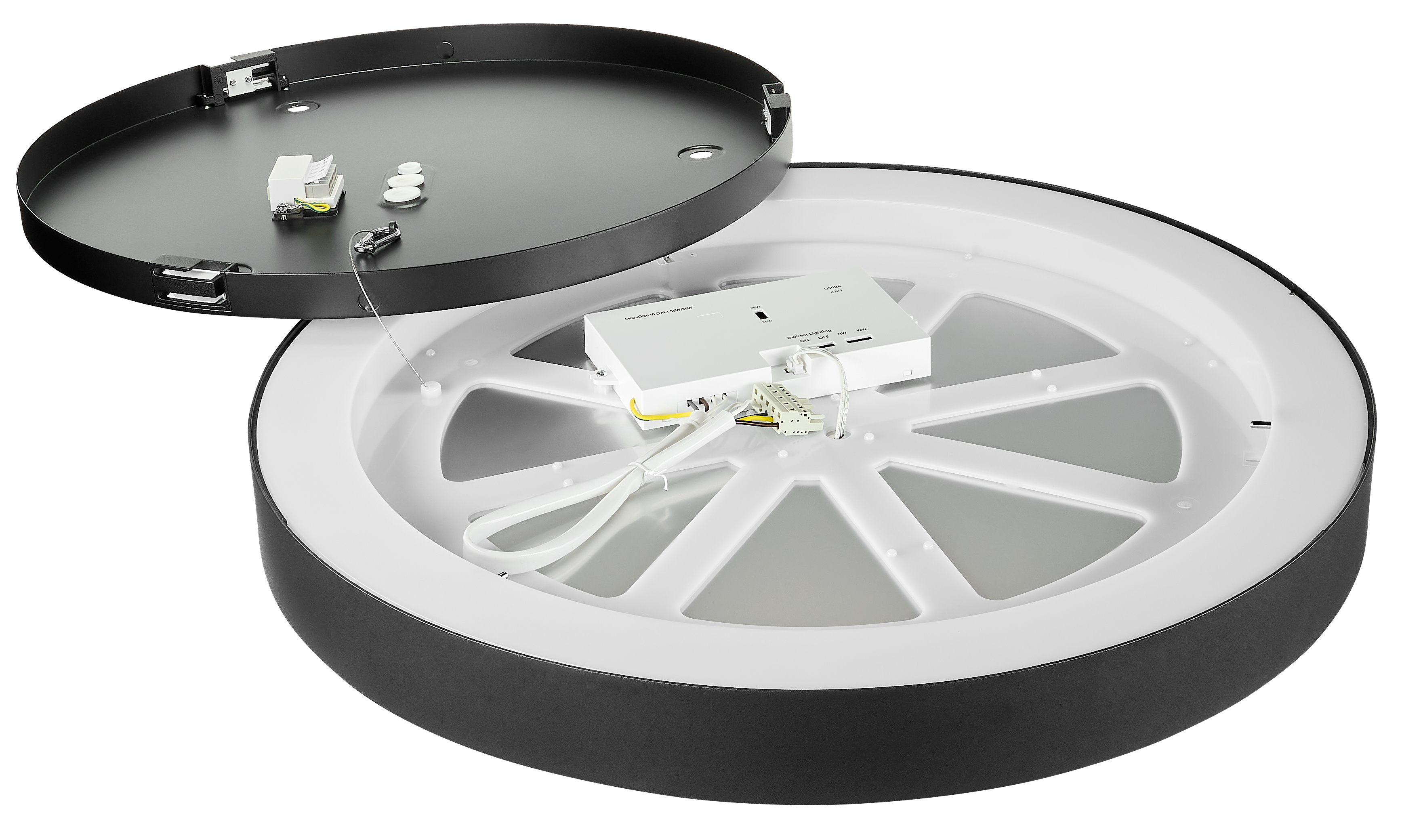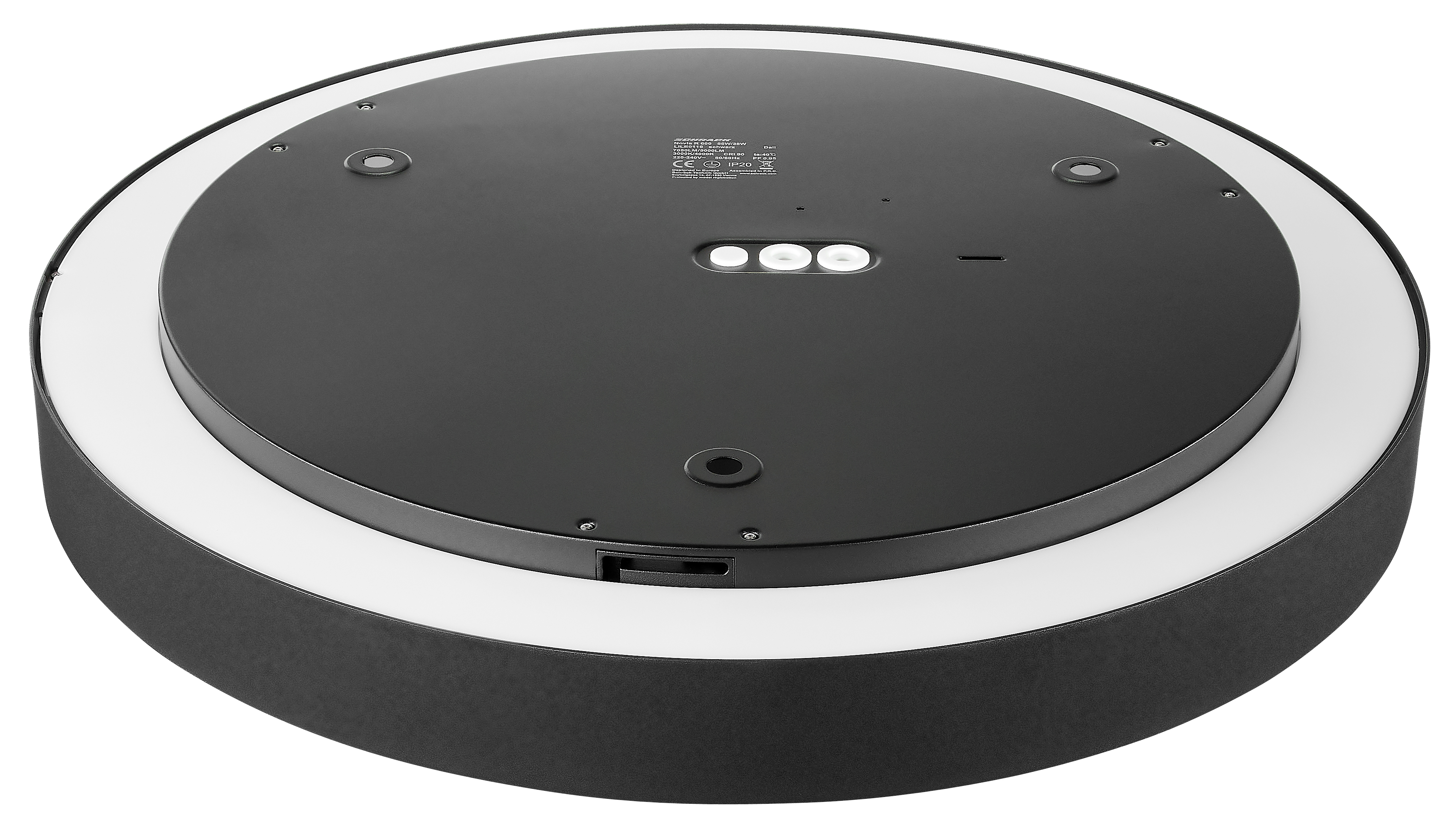 | Nástěnné a stropní svítidlo s nastavitelným výkonem a teplotou chromatičnosti 3000/4000K, 55W=6730lm, 75W=9180lm, 90W=11160lm, prům. 900mm, V=64/79mm, černé | |