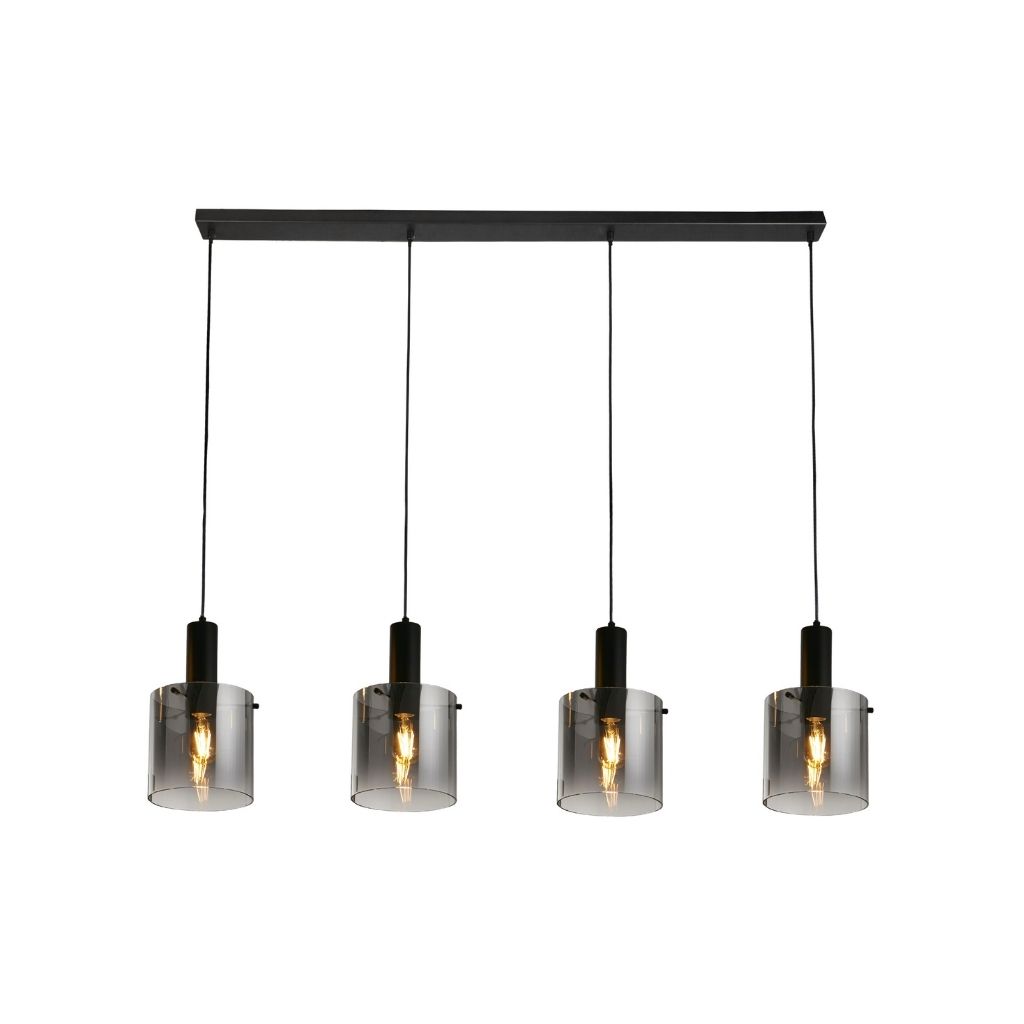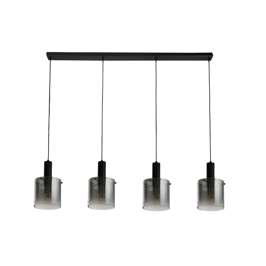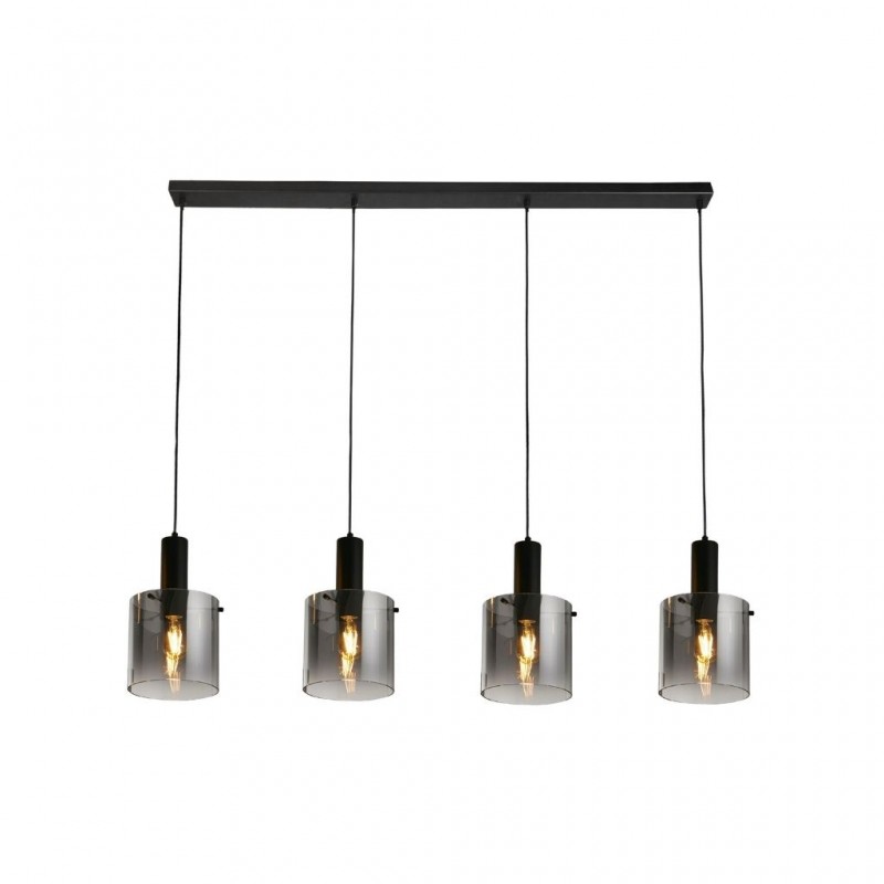 Searchlight závěsné svítidlo barva černá, povrchová úprava matný práškový lak, použitý materiál je měkká ocel a sklo. Rozměry v cm: celková výška: 150, výška: 35, šířka: 22, délka: 142, projekce: 0. Světelný zdroj objímka E27, potřeba žárovek 4, světelný zdroj není v balení, doporučený typ žárovky od výrobce je klasická baňka na max. 60W. |