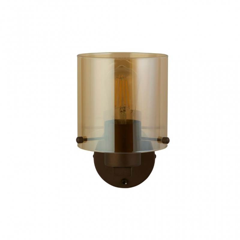 Searchlight nástěnné svítidlo barva kávová a amber, povrchová úprava barvení matné, použitý materiál je kov a sklo. Rozměry v cm: celková výška: 24, výška: 24, šířka: 15, délka: 0, projekce: 20. Světelný zdroj objímka E27, potřeba žárovek 1, světelný zdroj není v balení, doporučený typ žárovky od výrobce je klasická baňka na max. 60W. |