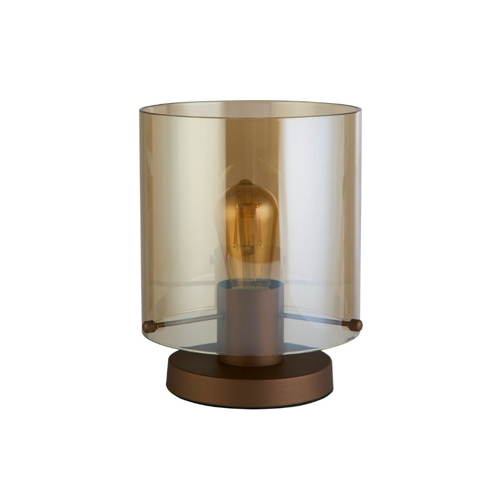 Searchlight stolní lampa barva kávová a amber, povrchová úprava barvení, použitý materiál je kov a sklo. Rozměry v cm: celková výška: 25,5, výška: 25,5, šířka: 20, délka: 20, projekce: 0. Světelný zdroj objímka E27, potřeba žárovek 1, světelný zdroj není v balení, doporučený typ žárovky od výrobce je klasická baňka na max. 60W. |