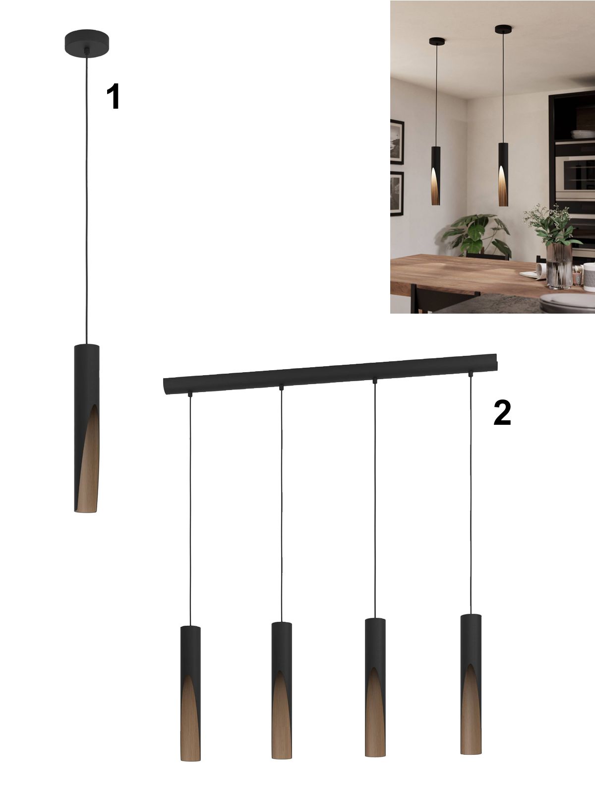1. Egl-901732 HL/1 GU10 SCHWARZ/HOLZ 'BARBOTTO' detail výrobku