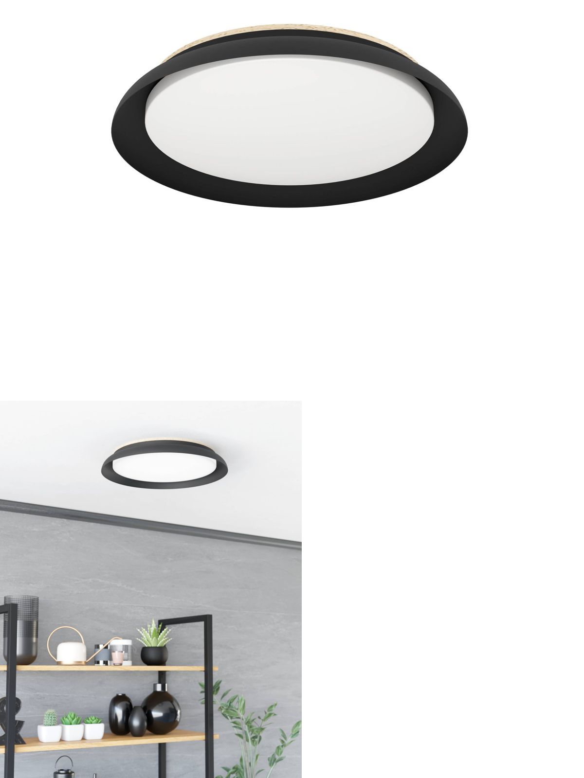 Moderní stropní LED svítidlo v elegantní černé barvě, v kombinaci s bílou a hnědou barvou. Svítidlo je vyrobneo z oceli, dřeva a plastu. Svítí teplou bílou barvou. Není možné ho stmívat. |