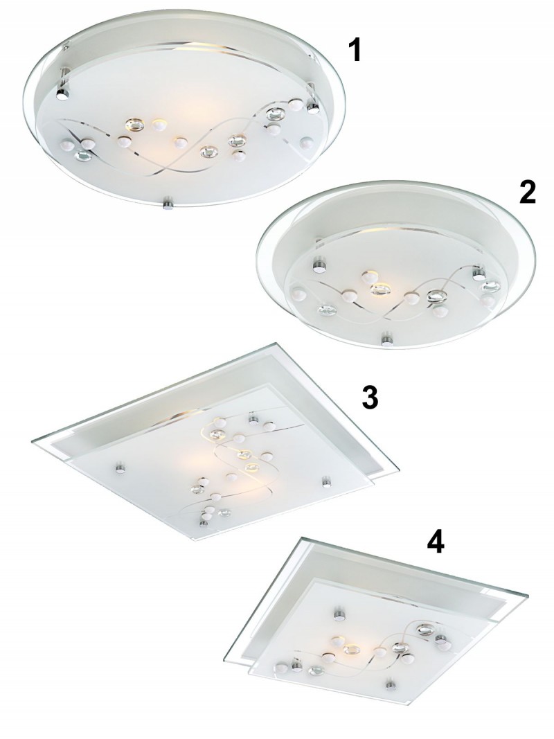 3. GL-48092-2 Stropní svítidlo, kov chrom, satinované sklo, Dekorativní kamínky, zrcadlový okraj Dx?xV: 34x34x9cm, bez žárovek 2xE27, max. 60W 230V ILLU. detail výrobku