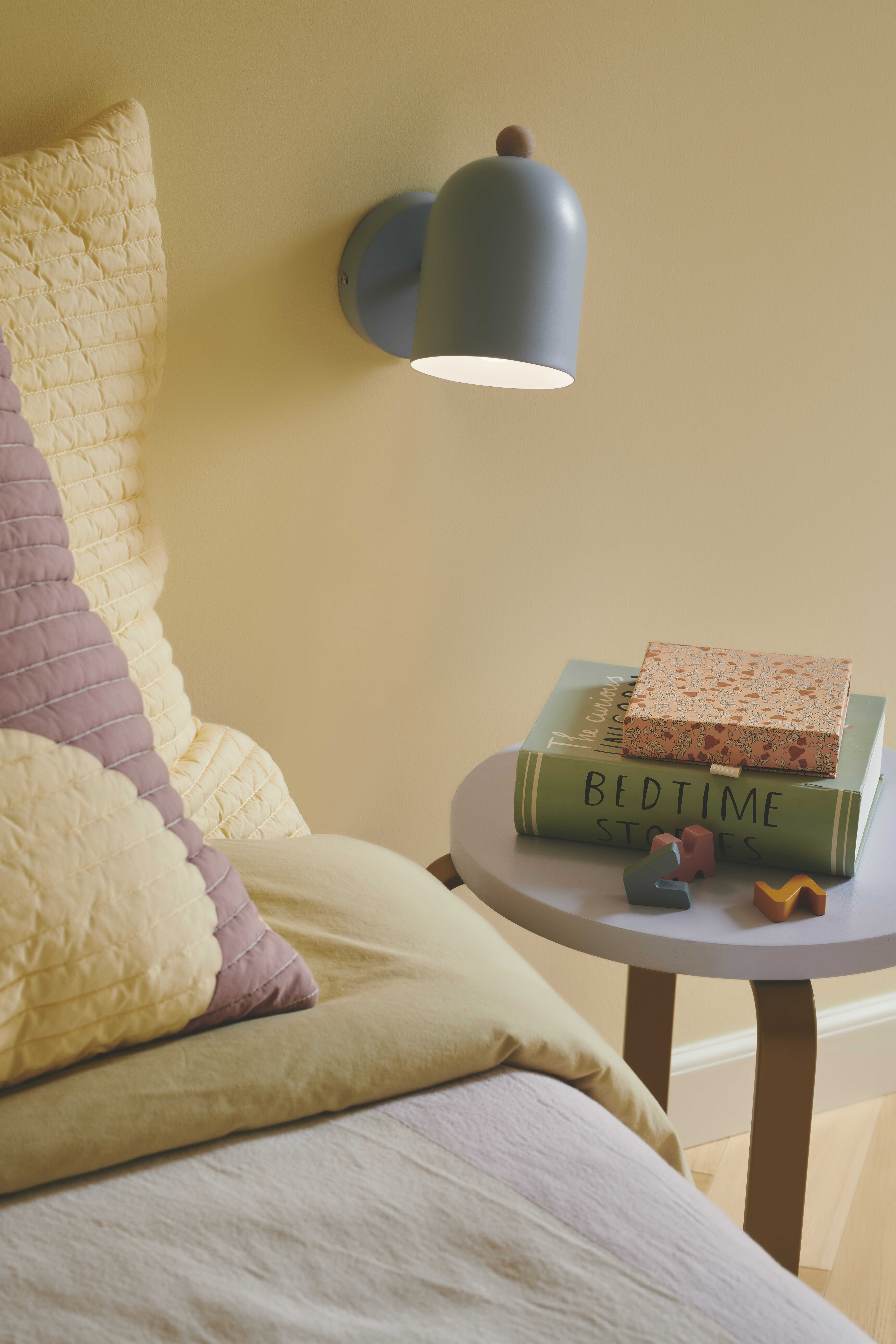 | Jednoduché nástěnné svítidlo Gaston ve 4 tlumených barvách se skvěle hodí do dětského pokoje. Zaoblené stínítko s dřevěným detailem otočíte díky nastavitelné hlavě. | |