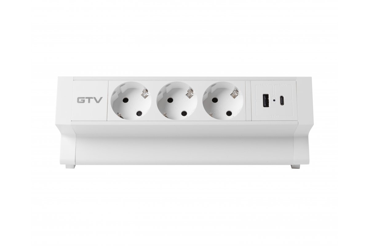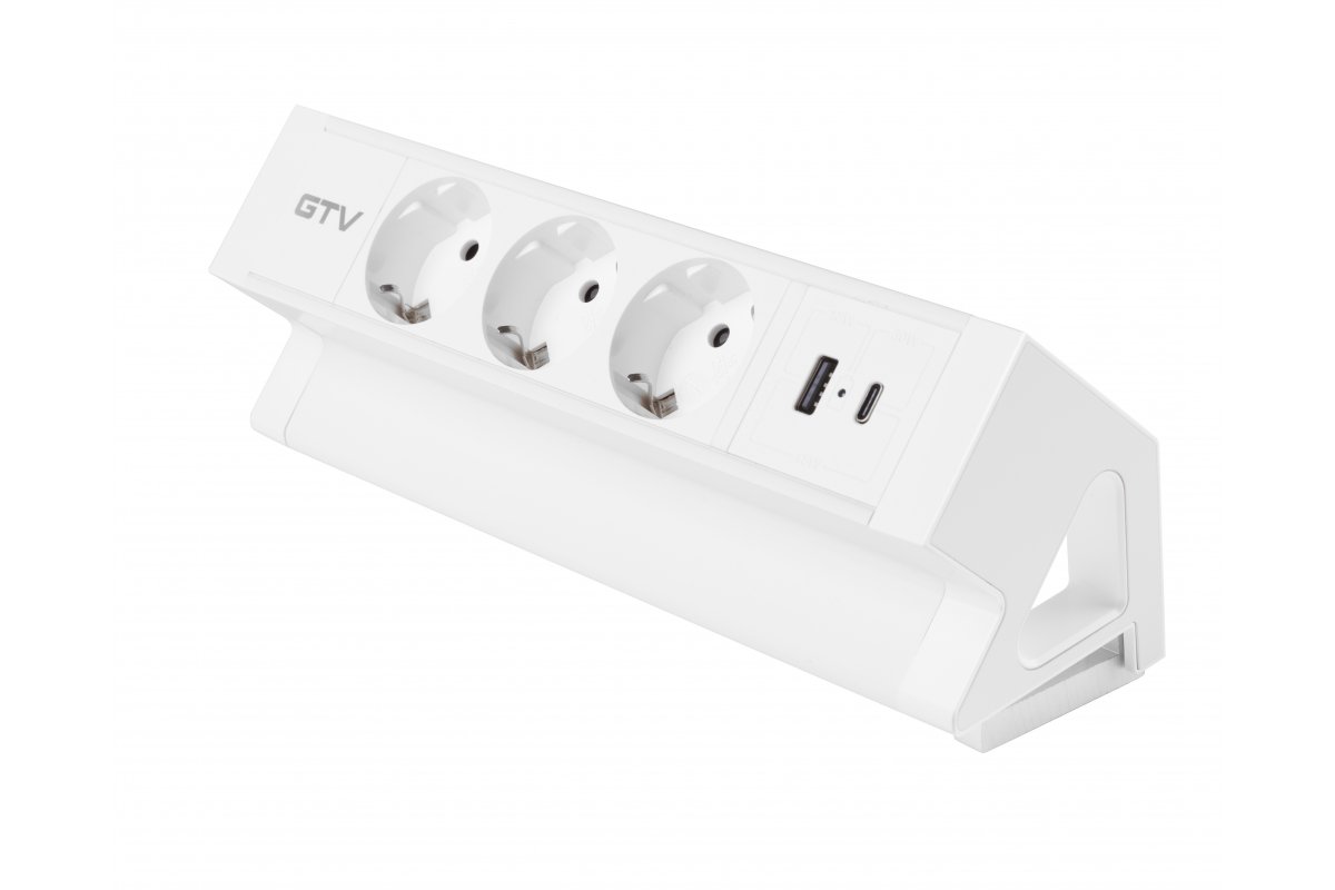Nábytková zásuvka Basco, 3 x zásuvka Schuko, USB A+C, kabel 1,5 m, bílá s montáží - Doplňkový sortiment