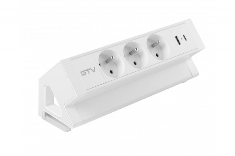 Nábytková zásuvka Basco, 3 x zásuvka s uzemněním, USB A+C, kabel 1,5 m, bílá s montáží - Doplňkový sortiment