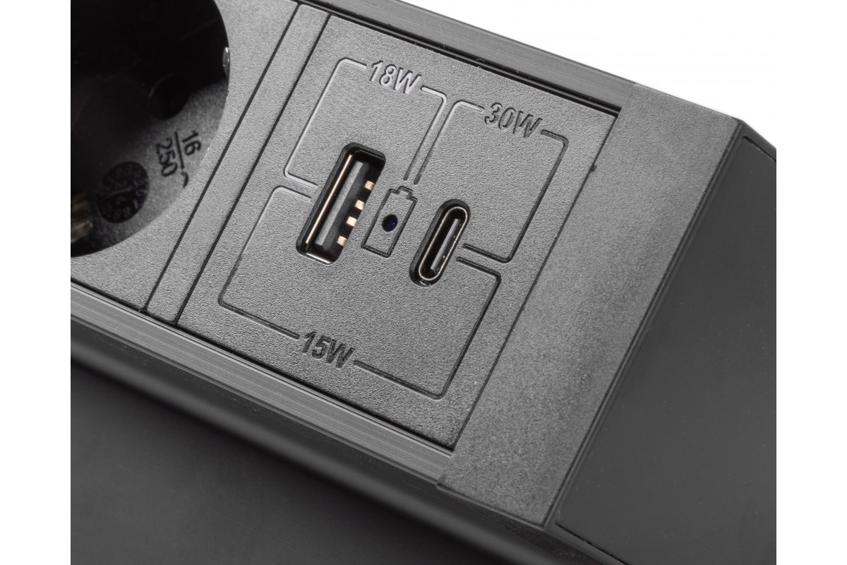 Nábytková zásuvka Basco, 3 x zásuvka s uzemněním, USB A+C, kabel 1,5 m, černá s montáží - Doplňkový sortiment
