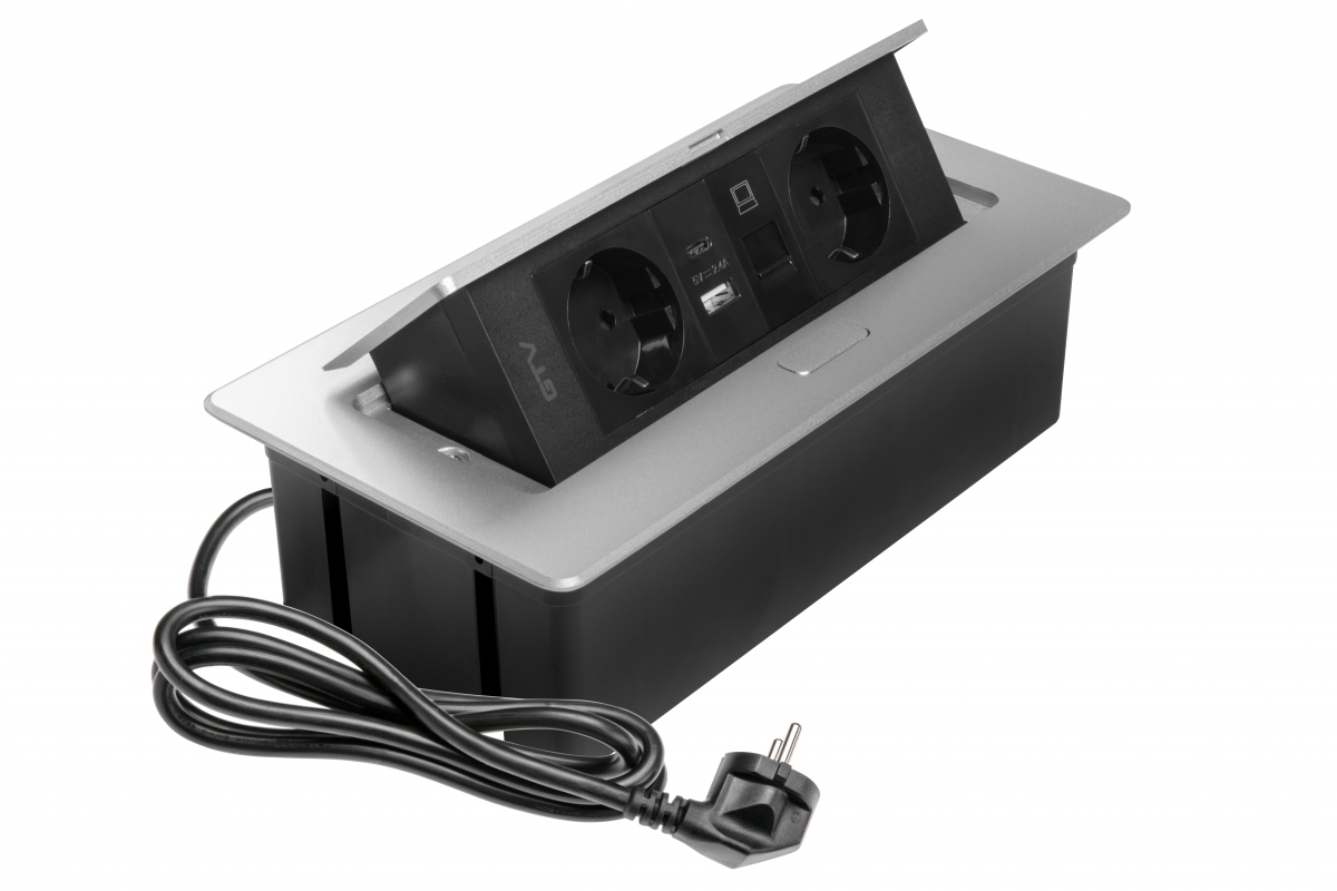 MULTISOFT nábytková zásuvka 2x zásuvka Schuko, USB A+C, RJ45, napájecí kabel se zástrčkou, hliník - Doplňkový sortiment