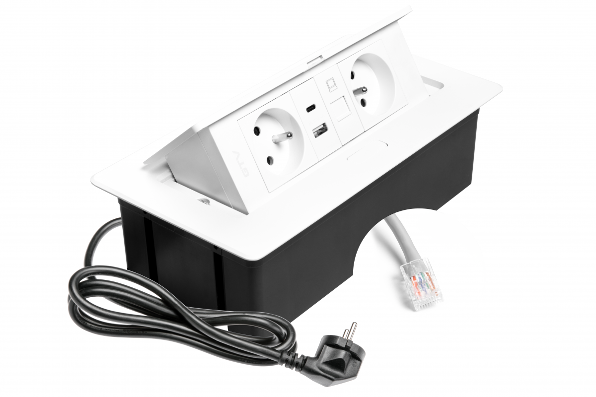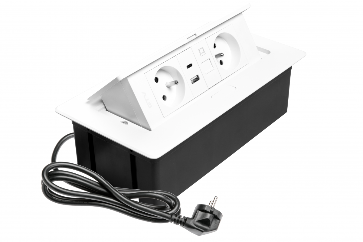 MULTISOFT nábytková zásuvka 2x zásuvka s uzemněním, USB A+C, RJ45, napájecí kabel se zástrčkou, bílá - Doplňkový sortiment