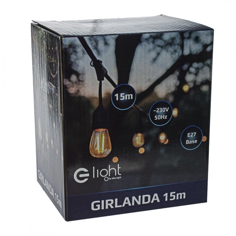 Nabízený věnec značky Eko-Light je dlouhý 15 metrů. Jeho šířka je však 35 mm a výška 60 mm. Tento model váží 3 kilogramy. Girlanda je vybavena celkem 15 světelnými body. Každý z nich je vybaven paticí se závitem typu E27. Každý z nich je rovněž vodotěsný. Za zmínku stojí, že girlanda je popsána stupněm krytí IP44. To znamená, že tento model je kromě vlhkosti chráněn také proti prachu. Věnec je vyroben z kvalitního plastu v univerzální černé barvě. Tento model má také zásuvku pro připojení další girlandy. Světelné zdroje nejsou součástí balení. Girlandu navrženou značkou Eko-Light lze díky její vysoké kvalitě zpracování a stupni ochrany snadno instalovat na zahradách, terasách nebo v altánech. Takový věnec bude dokonalým doplňkem prostoru a jeho světlo jistě vytvoří dokonalou náladu při večerních večeřích a setkáních s přáteli. Věnec lze však snadno instalovat i v interiéru. Tento model se bude skvěle hodit například do místností ve skandinávském nebo loftovém stylu. |