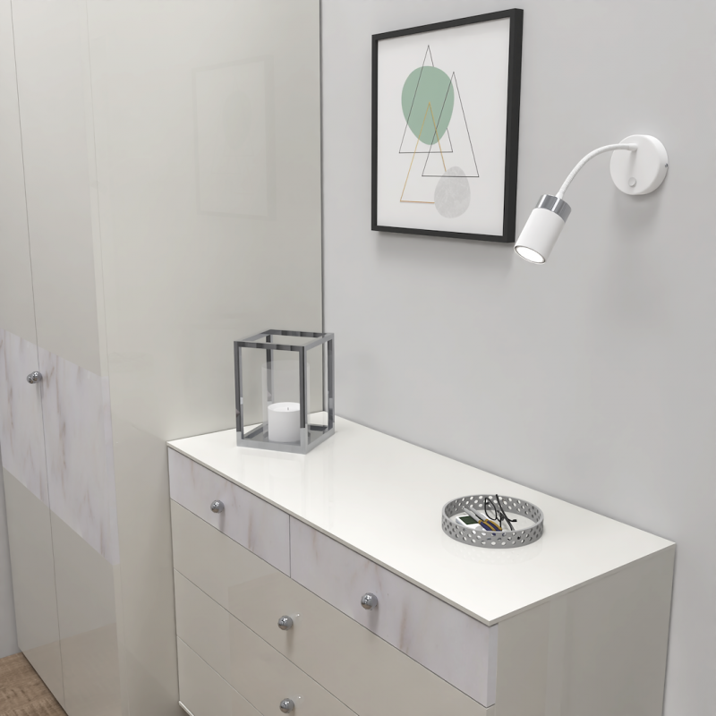 Moderní bodové nástěnné svítidlo do ložnice a obývacího pokoje Joker White je ideální nástěnné svítidlo s pohyblivým krkem, takže můžete libovolně měnit směr světla. Nástěnné svítidlo Joker vybavené pexesem bude dokonale fungovat na obou stranách postele v ložnici i v obývacím pokoji. Tento model je navíc vybaven vypínačem v kování. Díky němu můžete světlo před spaním rychle vypnout. Bílý rám lampy s chromovanými prvky se bude skvěle hodit do moderních interiérů - zejména do těch minimalistických a skandinávských. K vytvoření nástěnného svítidla Joker jsme použili kov a plast odolný proti poškození Nástěnné svítidlo JOKER WHITE flex - specifikace Nástěnné svítidlo JOKER WHITE flex nabízí možnost nastavení výšky v rozmezí 100-420 mm. Díky ideálním rozměrům stínidla, tj. 90 mm na výšku a 60 mm na šířku, nebude nástěnná lampa příliš ohromující, ale neztratí se ani ve větších místnostech. Nástěnné svítidlo bylo přizpůsobeno pro použití se žárovkou se závitem GU10. Nabízený výkon je 8W LED. Hmotnost nástěnného svítidla je pouhých 0,36 kg. |