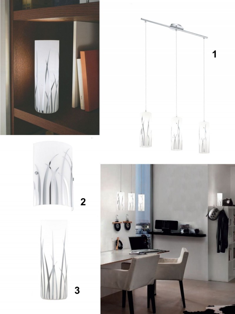 Sada svítidel Rivato vyrobených z oceli v barvě chromu a z bílého skla s dekorem. Zajímavým prvkem budou v obývacím pokoji, kuchyni, ložnici i chodbě. |