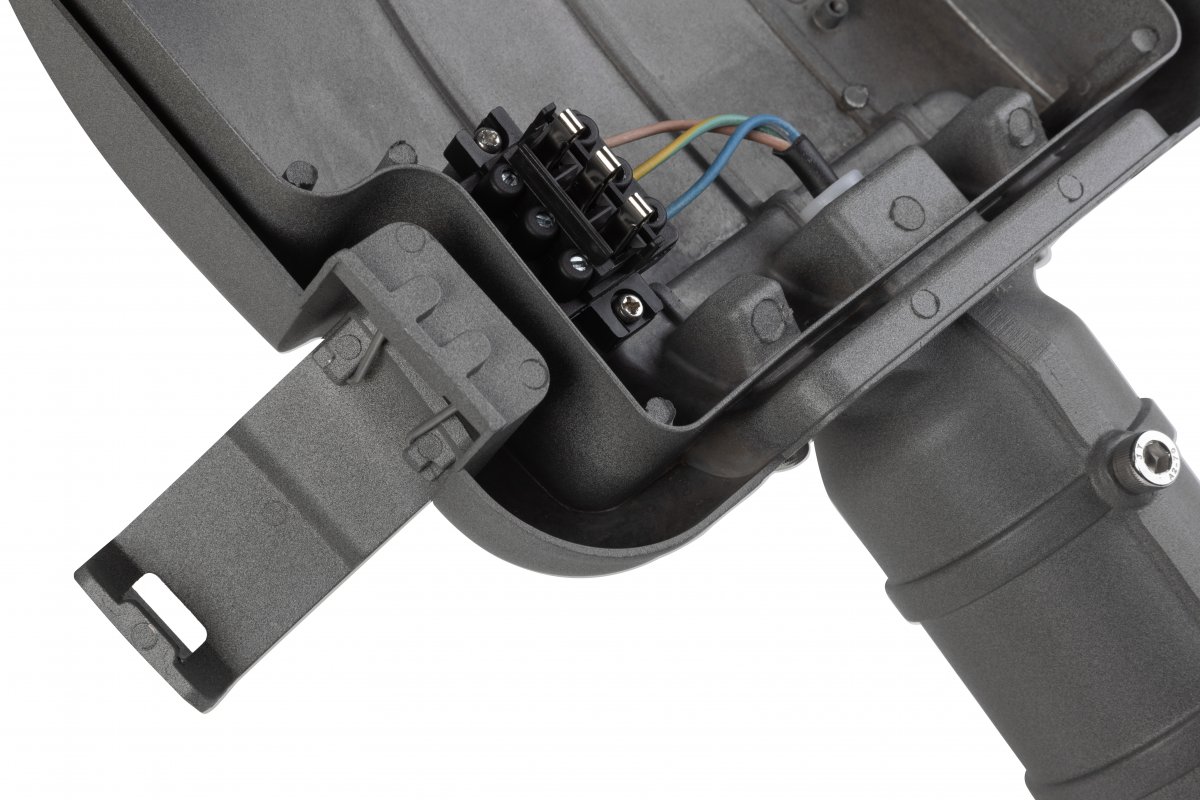 Pouliční a parková lampa DANI je moderní a efektivní řešení osvětlení, ideální pro aplikace v městských prostorách, jako jsou ulice, parky nebo sídliště. S vysokou světelnou účinností 150 lm/W poskytuje jasné a rovnoměrné osvětlení a neutrální barva světla 4000 K podporuje vizuální komfort a bezpečnost pro uživatele. Svítilna má nastavitelný úhel držáku ve dvou polohách (0° nebo 90°), což umožňuje její montáž přímo na sloup (držák svisle) nebo pomocí výložníku (držák vodorovně) s možností dodatečného nastavení sklonu. Vestavěná vodováha umožňuje přesně umístit lampu do správného úhlu.