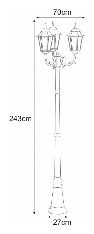 Osvětlení, které pozvedne vaši zahradu na novou úroveňK-7006A2/3 je nádherná venkovní stojací lampa, která je vysoká 243 cm. Díky velkým rozměrům si tento model jistě najde své místo ve velkých zahradách, kde dokonale zvýrazní prostor. Nic však nebrání tomu, aby byla tato lampa umístěna i na menších pozemcích, protože pak by mohla sloužit jako ústřední bod celé úpravy a nahradit menší zdroje světla. Rozměry však nejsou jediným pozoruhodným aspektem svítidla K-7006A2/3, neboť i jeho design je poutavý. Celý design je vytvořen po vzoru klasických městských luceren, od nichž dotyčný model zdědil ornamenty, tvar stínidel a charakteristickou nohu. Krása jde ruku v ruce s funkčnostíKromě vizuální stránky je zahradní lampa z řady LOZANA především funkčním zařízením. Kovová konstrukce a třída krytí IP44 zajistí dlouholeté používání bez ohledu na povětrnostní podmínky. Tři žárovky zase poskytnou správné množství světla, které v kombinaci s výškou lampy pokryje velkou plochu. K tomu přispěje i design stínidla, které má čiré skleněné tabule, jež zajistí plné využití výkonu žárovky. |