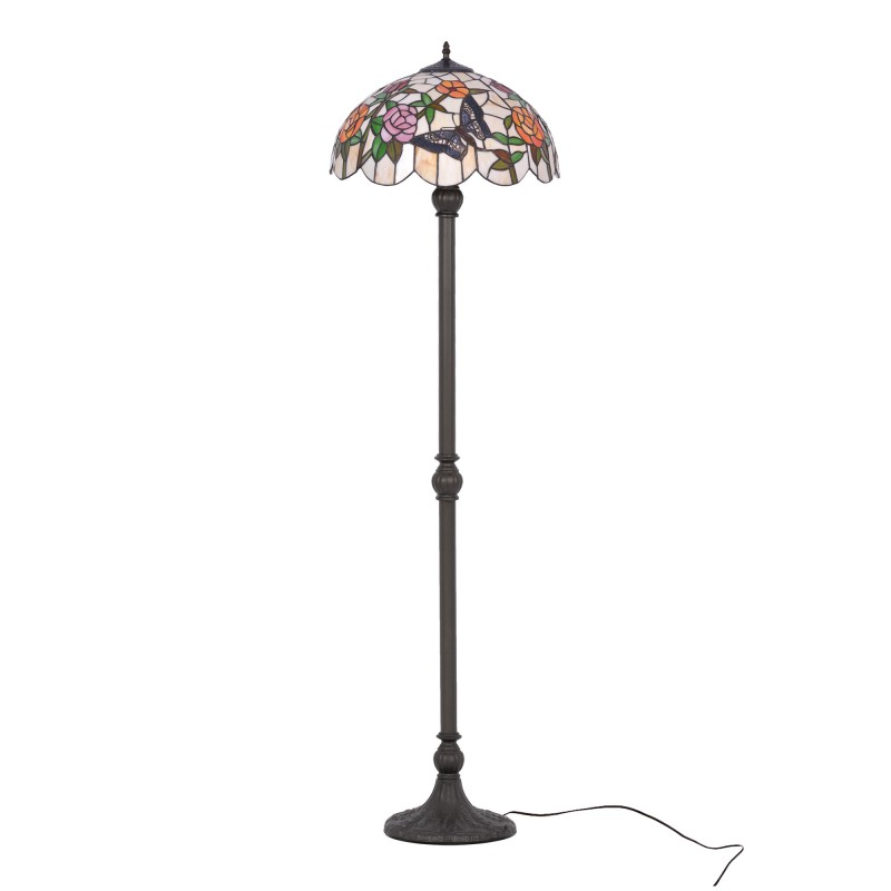 Romantická, bohatě zdobená stojací lampaVitárová lampa ""Rose"" je symbolem klasické elegance a romantiky, která nás přenese do světa plného květin a jemných detailů. Stínidlo je vyrobeno z ručně broušeného skla a zobrazuje krásné rozkvetlé růže v pastelových odstínech růžové, fialové a červené barvy. Každý kousek skla je pečlivě vybrán tak, aby vytvořil harmonický celek připomínající secesní umělecká díla. Půvab lampy umocňují jemní motýlci, kteří se decentně vznášejí nad květinami a dodávají jí lehkost a půvab. Dokonalý doplněk do vintage, rustikálních a eklektických interiérů!Podstavec lampy ve starobronzové barvě je masivní, ale elegantní, což dokonale ladí s bohatými detaily na stínidle. Stylizovaný tvar podstavce připomíná klasické dekorativní prvky, díky čemuž se lampa ""Rose"" skvěle hodí do vintage, retro a art déco aranžmá. Tento nadčasový design umožňuje její všestranné využití - skvěle se hodí do obývacího pokoje, ložnice i pracovny, vnese do interiéru útulnou, romantickou atmosféru. Příjemné světlo, které podporuje relaxaciLampa ""Rose"" je nejen funkčním prvkem osvětlení, ale také skutečnou ozdobou každého interiéru. Její bohaté detaily a pečlivé zpracování z ní činí ústřední dekorativní bod v místnosti. Měkké, rozptýlené světlo, které vyzařuje, vytváří hřejivou atmosféru podporující relaxaci a klid.Jedná se o ideální lampu pro vytvoření intimního, útulného prostoru, ve kterém můžete relaxovat po dlouhém dni. Snadná a intuitivní výměna žárovekStojanová lampa má dvě patice pro žárovky se závitem E27, což umožňuje nastavit intenzitu osvětlení podle vašich potřeb. Možnost použití dvou žárovek znamená, že lampa nabízí výjimečnou flexibilitu při vytváření nálady v interiéru - můžete si vybrat žárovky s různým výkonem nebo teplotou barev, čímž přizpůsobíte světlo různým příležitostem. Lampa se tak stává nejen dekorací, ale i praktickým řešením pro každodenní použití. |