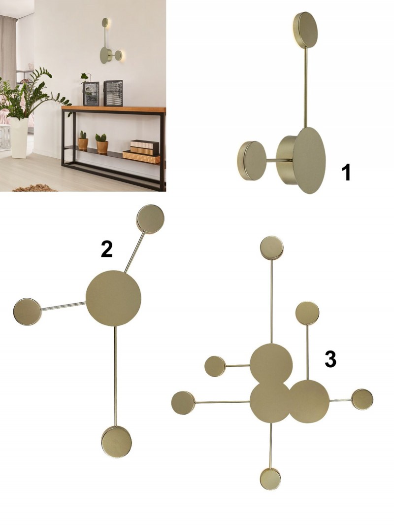 Moderní svítidla vyrobená z kovu a plastu v barvě champagne zlaté a bílé barvě. Svítí teplou bílou barvou. LED zdroj je zabudovaný a není možné ho měnit. Jsou vhodná do obývacích pokojů, chodeb i předsíní. |