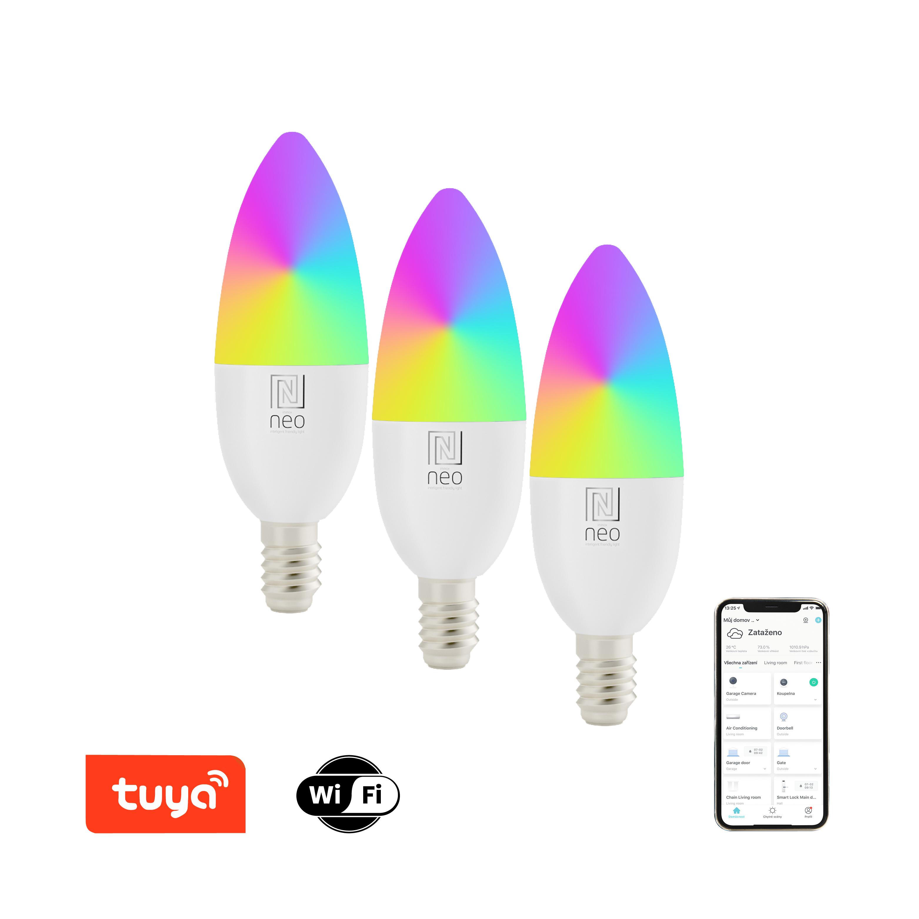 Immax NEO Smart sada 3x žárovka LED E14 6W RGB+CCT barevná a bílá,stmívatelná,WiFi, Beacon - Chytré osvětlení
