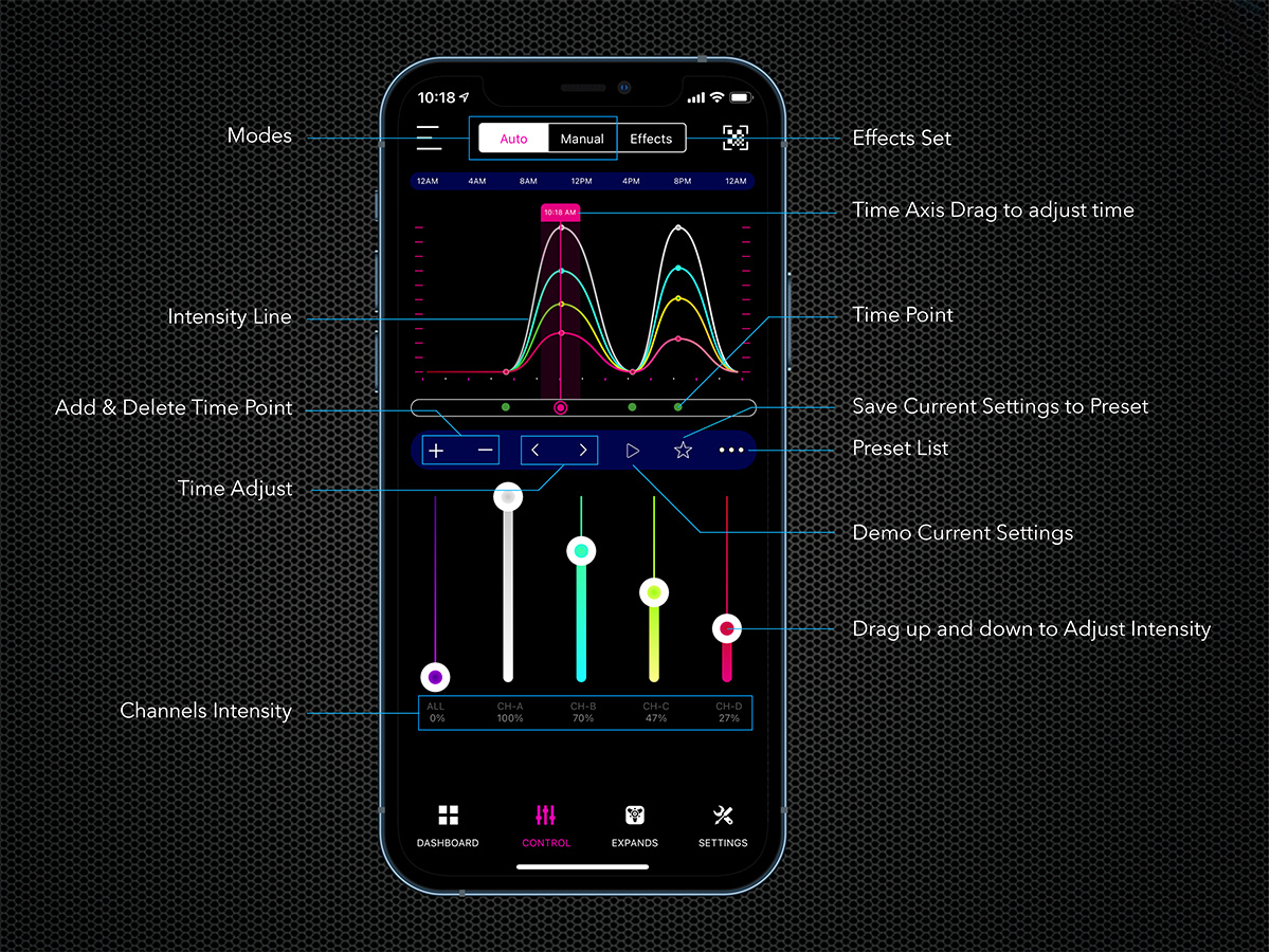 Kvalitní zpracování a inovativní LED technologie a dokonalý design. Tenoučké svítidlo zaručuje až 30 tisíc hodin nepřerušeného provozu. Moderní WRGB čipy poskytují rostlinám kompletní barevné spektrum, a zajistí ideální vybarvení ryb i dekorací. Tenké hliníkové tělo, díky svému tvaru, skvěle odvádí teplo a přináší klasický minimalistický vzhled pro Vaše akvárium. Technické parametry: Obsah balení: svítidlo, WiFi kontroler, napájecí zdroj, držák, návod |