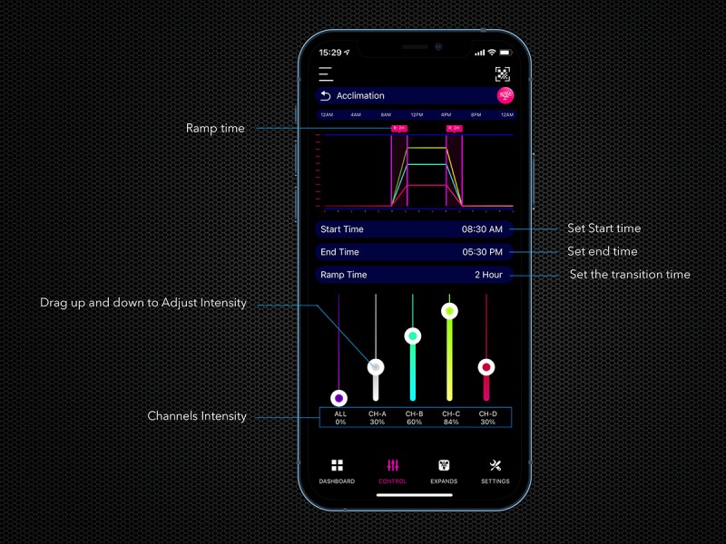 Kvalitní zpracování a inovativní LED technologie zaručuje až 30 tisíc hodin nepřerušeného provozu. Moderní WRGB čipy poskytují rostlinám kompletní barevné spektrum, a zajistí ideální vybarvení ryb i dekorací. Tenké hliníkové tělo, díky svému tvaru, skvěle odvádí teplo a přináší klasický minimalistický vzhled pro Vaše akvárium. Technické parametry: Obsah balení: svítidlo, WiFi kontroler, napájecí zdroj, držák, návod |