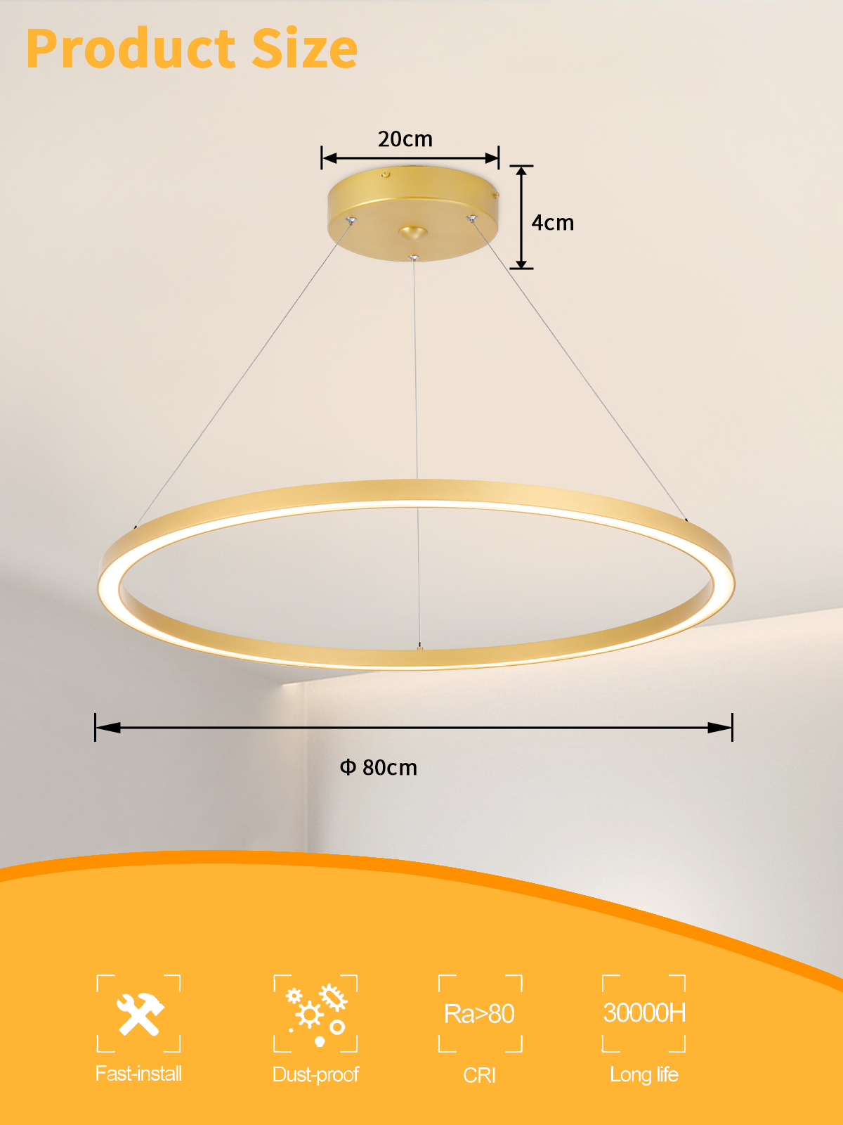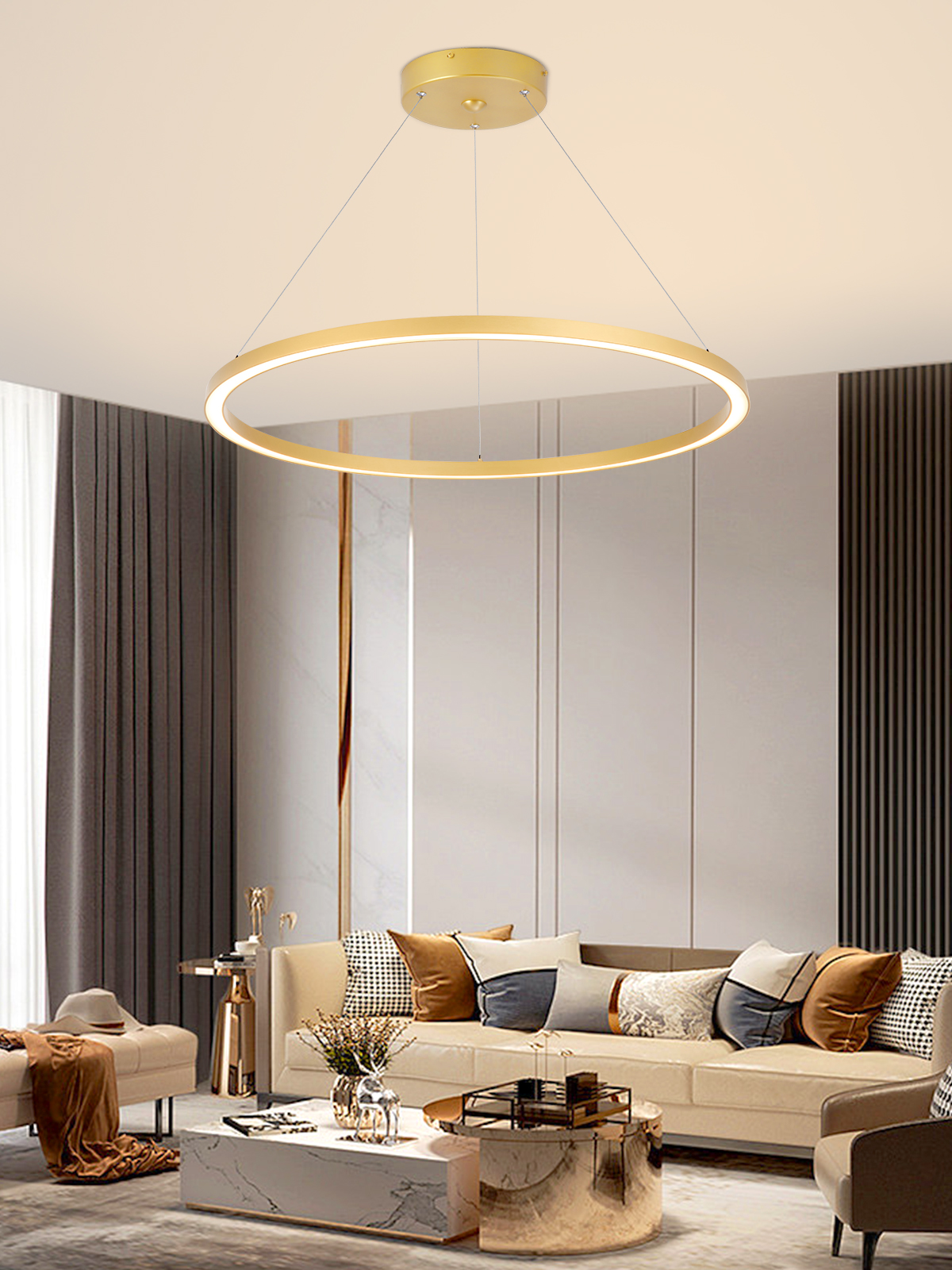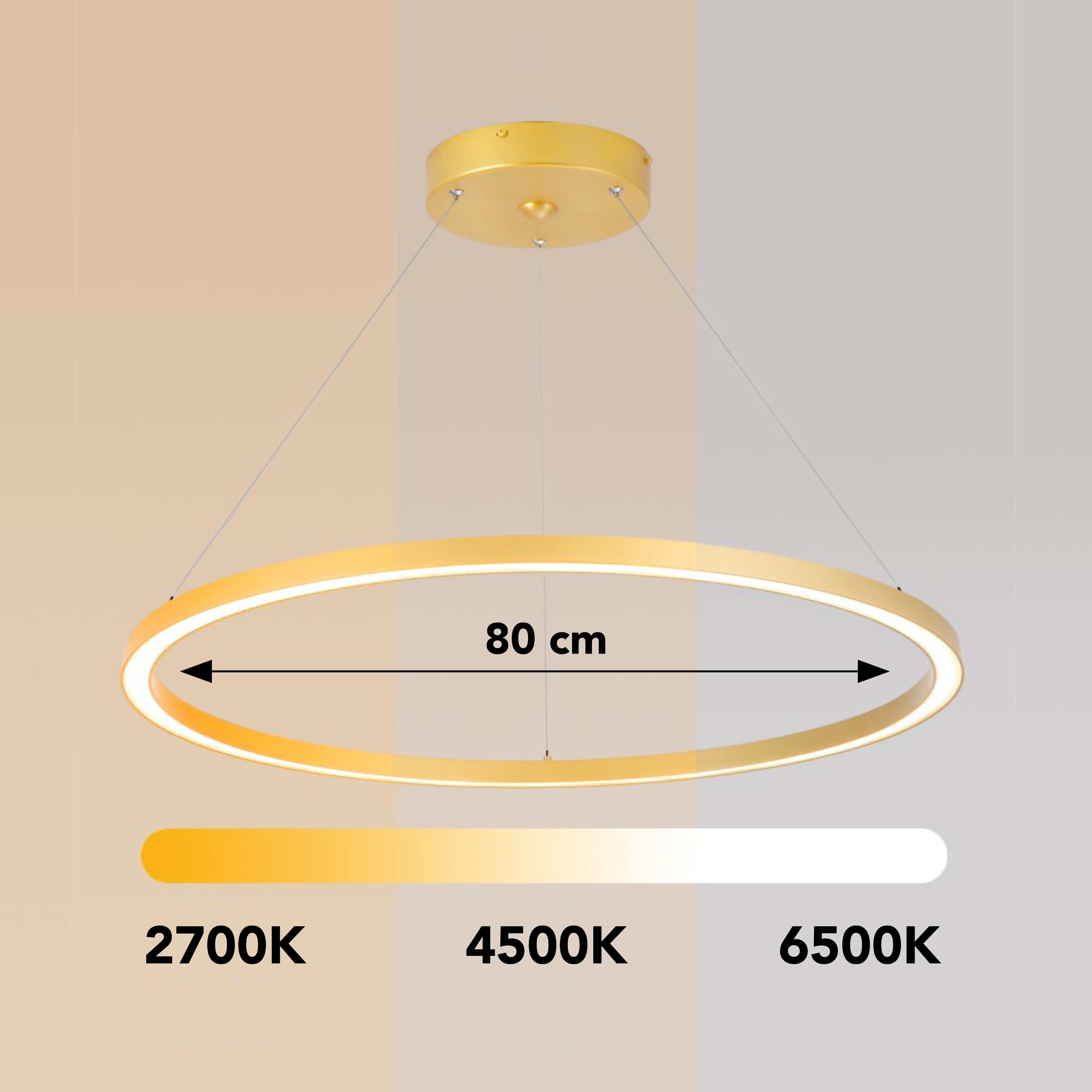 Technické parametry: Protokol: Zigbee 3.0 Materiál: kov, plast Barva svítidla: zlatá Rozměry: průměr 80cm Délka závěsu: max 150cm Barva světla: CCT 2700-6500K Příkon: 60W Světelný tok: 4200lm Stmívatelný : ano Doba svícení: 50 000 hod Vstupní napětí zdroje: (AC 220-230V 50/60Hz) CRI(Ra) Index podání barev: >86 (denní světlo má hodnotu Ra 100) Záruční lhůta: 3 roky