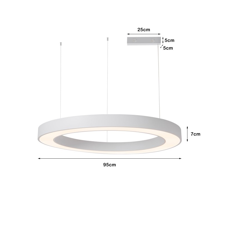 Technické parametry: Protokol: Zigbee 3.0 Materiál: kov, hliník, plast Barva svítidla: bílá mat Rozměry: D95 x 7cm Délka závěsu: max 120cm Barva světla: 2700-6500K Příkon: 68W Světelný tok: 4620lm Stmívatelný : ano Doba svícení: 50 000 hod Vstupní napětí zdroje: AC 100-240V 50-60Hz CRI(Ra) Index podání barev: >86 (denní světlo má hodnotu Ra 100) Záruční lhůta: 3 roky