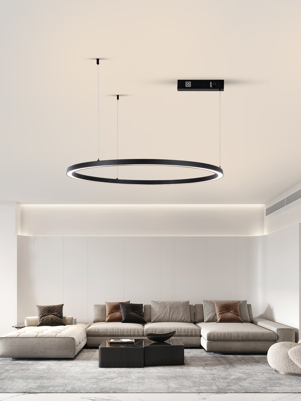 Nová kolekce závěsných lustrů FINO splňuje požadavky náročného uživatele, dokonalé tenké kruhy, vysoká svítivost, designové řešení závěsného systému.. Osvětlení FINO nevyniká pouze svým designem, ale také rozmanitou funkčností. Stačí jedno kliknutí na mobilním telefonu a změníte intenzitu či tepelnou zabarvenost, kdykoliv kliknutím změníte funkčnost z cenrálního osvětlení na náladové přisvícení.
