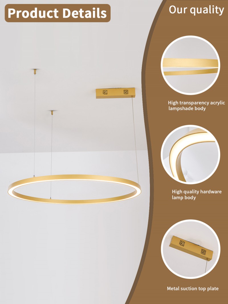 Immax NEO FINO NEW Smart závěsné svítidlo 1 kruh, 80cm, 60W, zlaté, Zigbee 3.0 - Chytré osvětlení