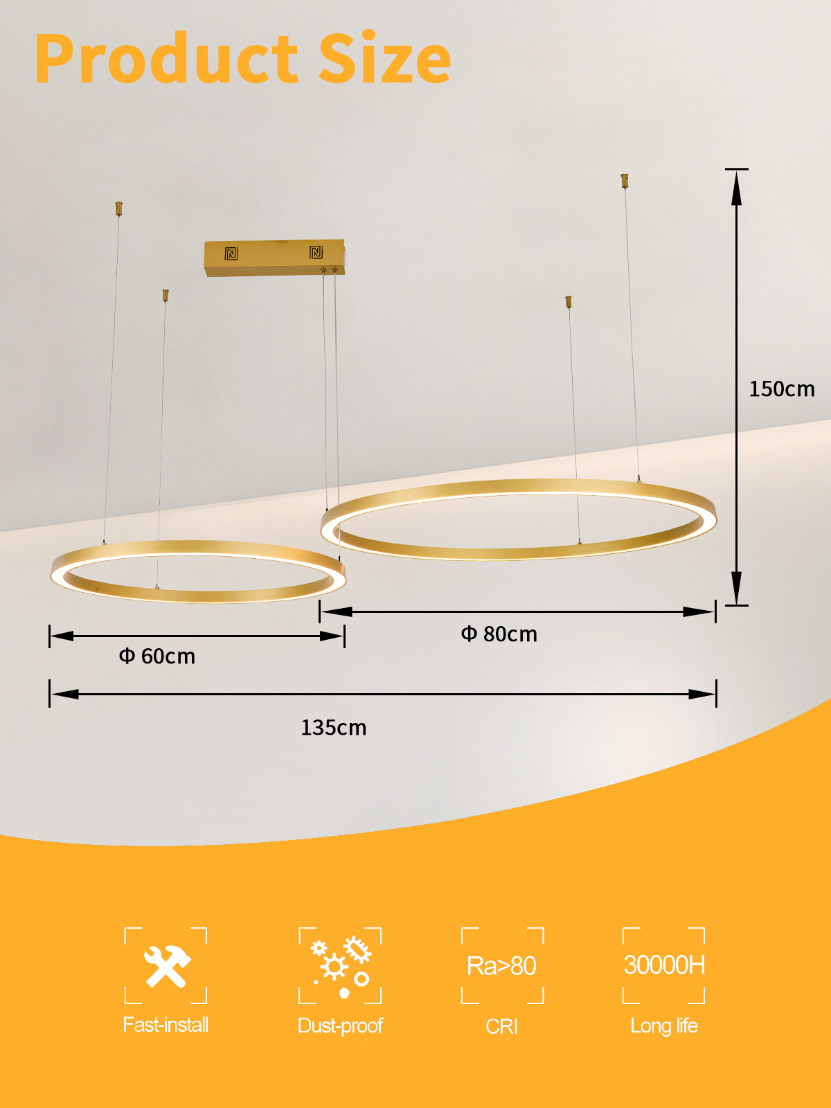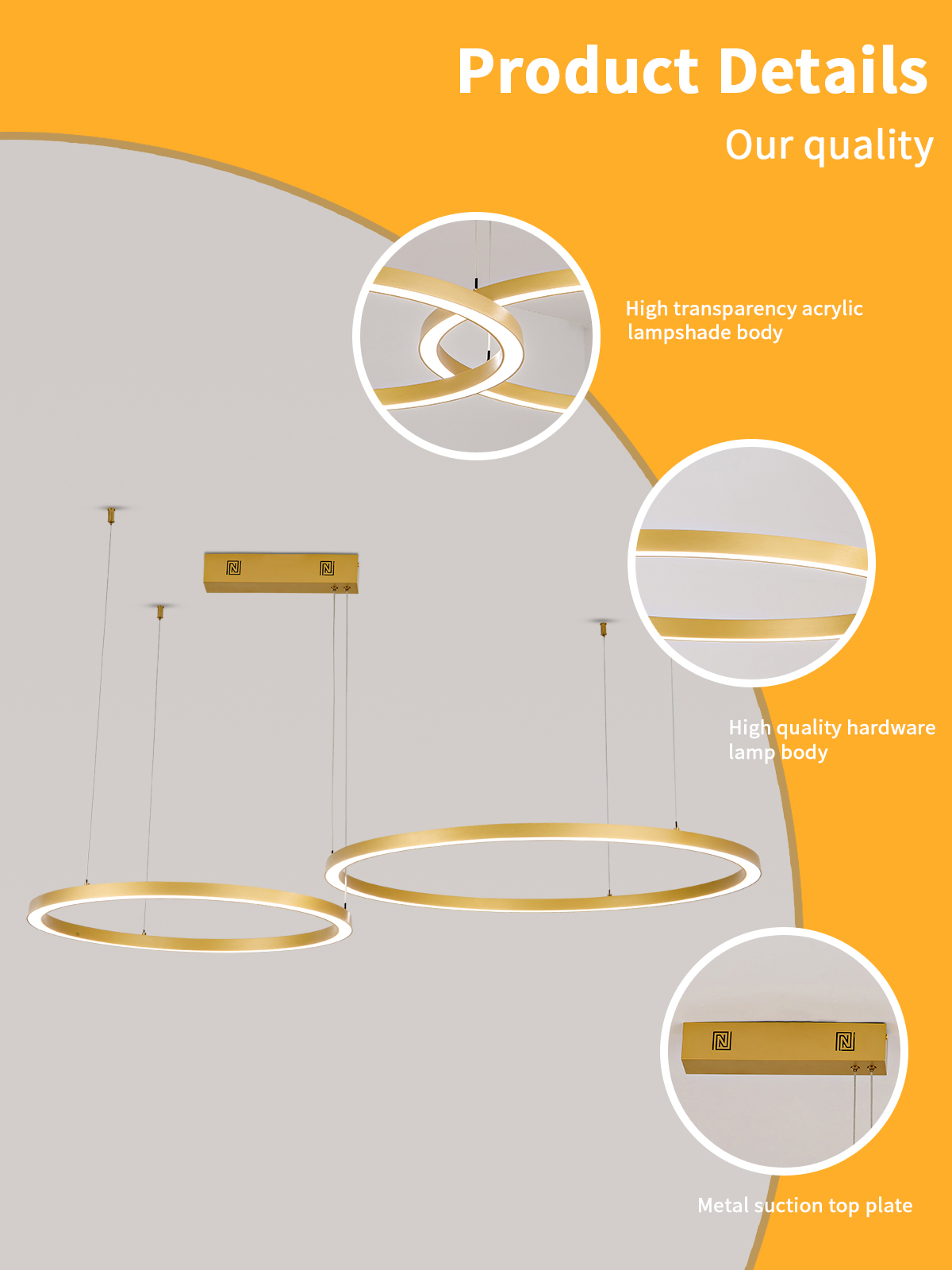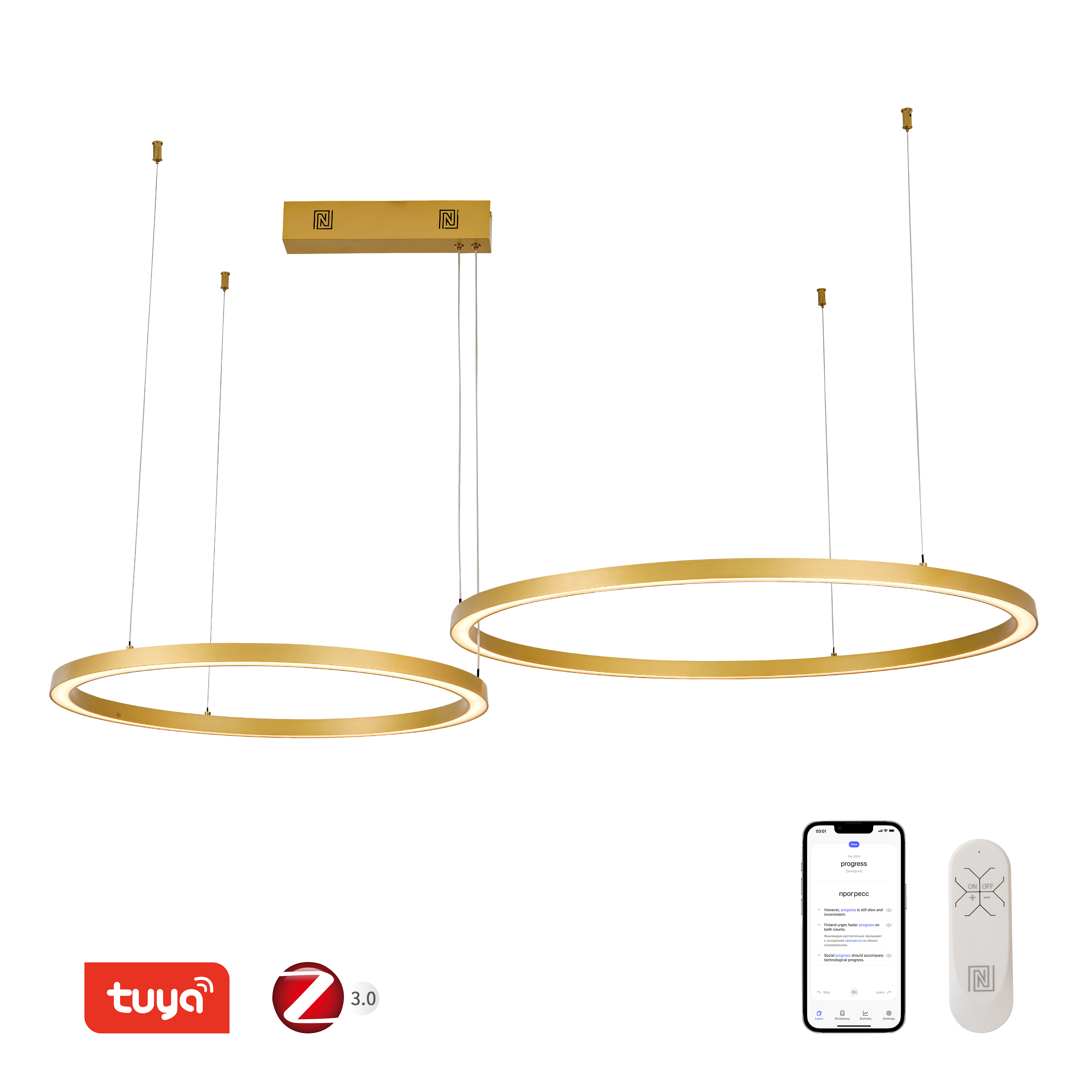Immax NEO FINO NEW Smart závěsné svítidlo 2 kruhy, 60+80cm, 93W zlaté, Zigbee 3.0 - Chytré osvětlení