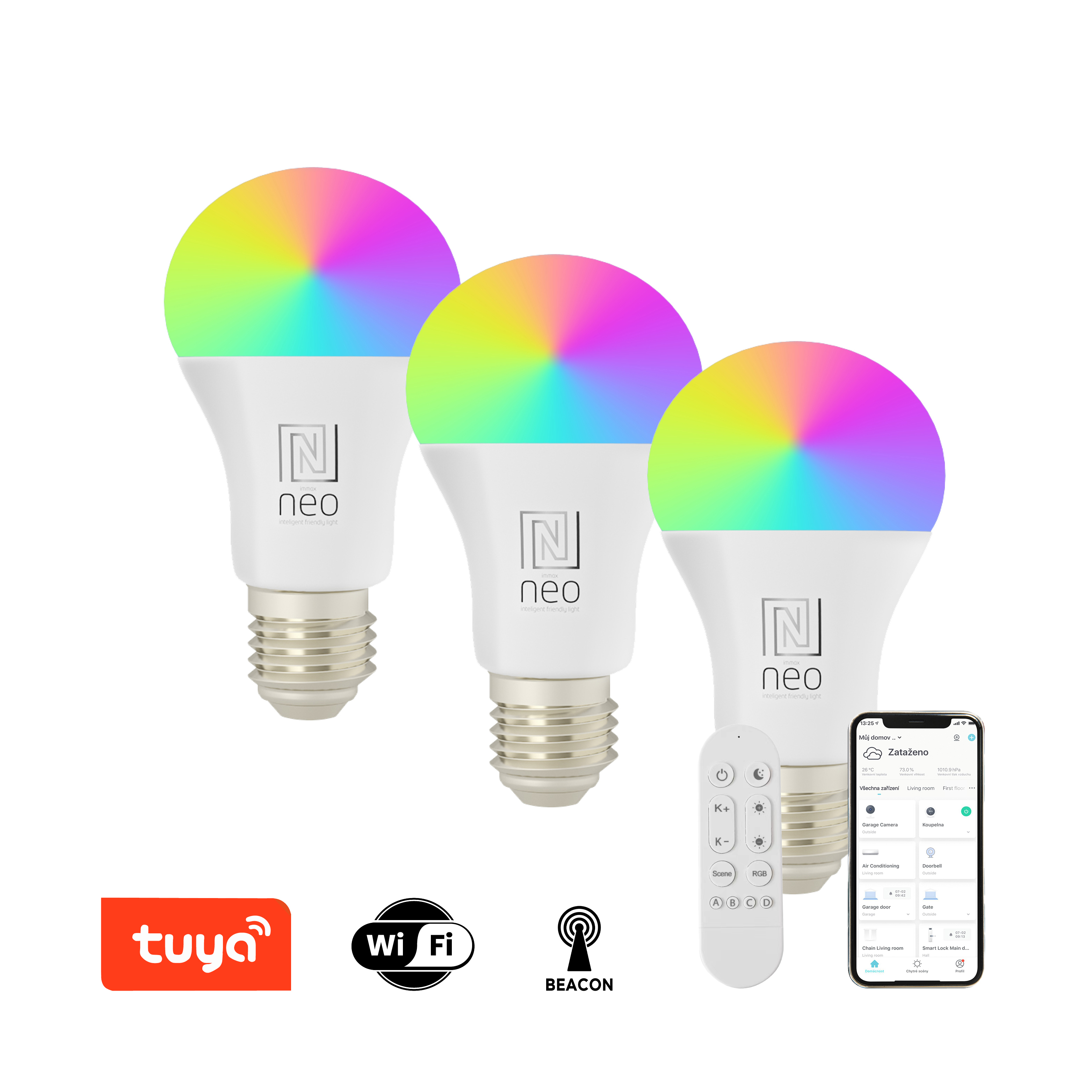 Immax NEO LITE sada 3x Smart žárovka LED E27 9W RGB+CCT, stmívatelná, WiFi, Beacon, DO - Chytré osvětlení