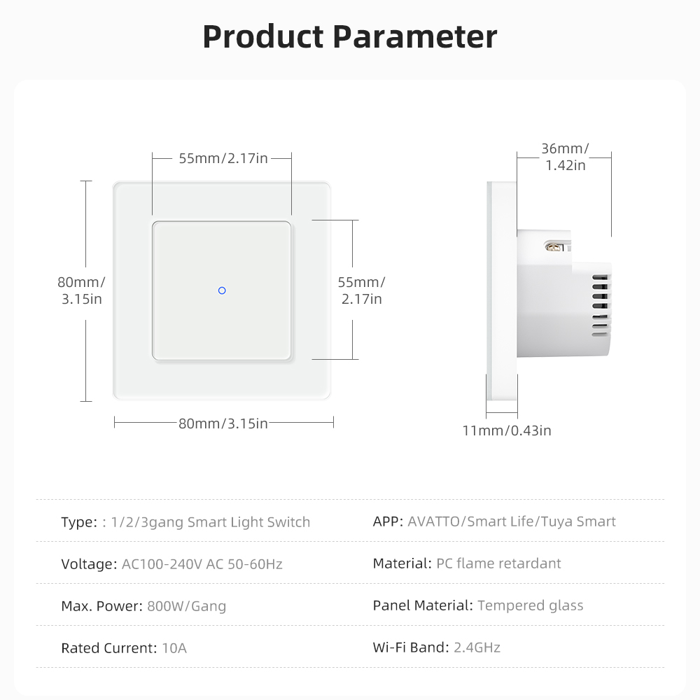 Technická specifikace: Obsah balení: Smart vypínač, uživatelský manuál |