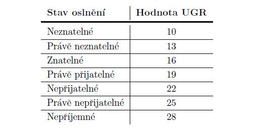 UGR stav oslnění: 12 (stupnice je: neznatelné 10 až nepříjemné 28)