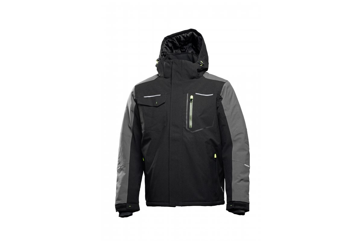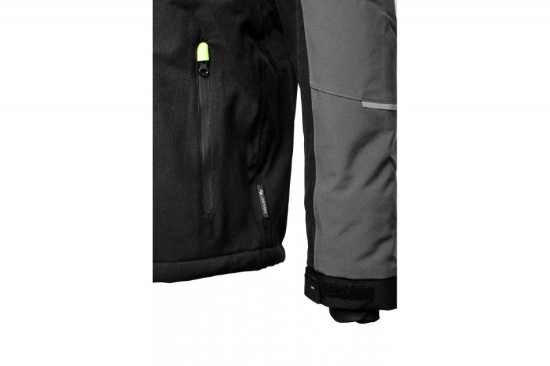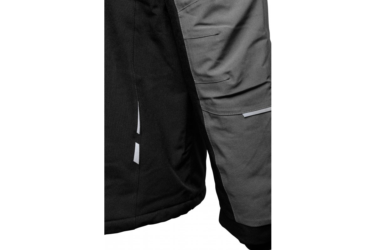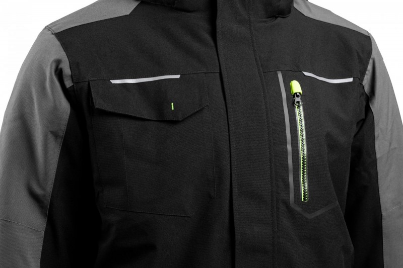Zateplená bunda AMOS je funkční svrchní oděv určený pro ty, kteří pracují v chladnějších klimatických podmínkách. Určeno pro řidiče, pracovníky lehkého průmyslu a univerzální zákazníky. Spojuje v sobě pohodlí při používání s robustní tepelnou ochranou. Elastický mechanický strečový materiál zvyšuje pohodlí uživatele. Funkčnost bundy zvyšuje odnímatelná kapuce a voděodolné zipy. Podlepené švy zajišťují trvanlivost a odolnost při intenzivním používání ve vlhkém a větrném prostředí.