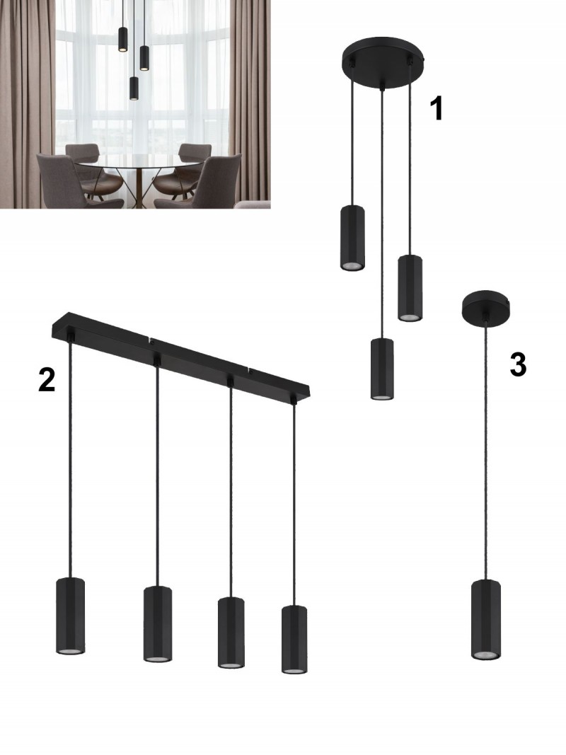 Stylová závěsná svítidla vyrobená z kovu a hliníku v matné černé barvě. Tělo svítidla je kovové a stínidlo je hliníkové. Se závitem GU10. Tato moderní svítidla lze doplnit o chytrou LED žárovku a pomocí chytrého telefonu měnit barvu nebo teplotu svícení, stmívat je a navodit tak příjemnou atmosféru v interiéru. |