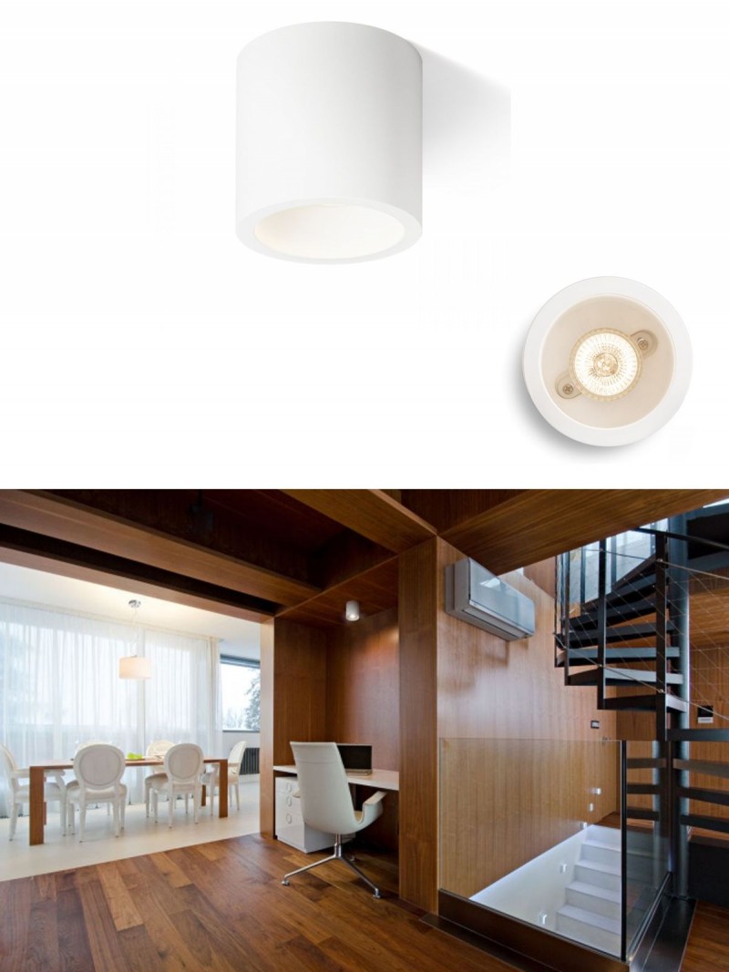 Stropní sádrový válec. Svítidlo je možné přetírat interiérovými barvami. |