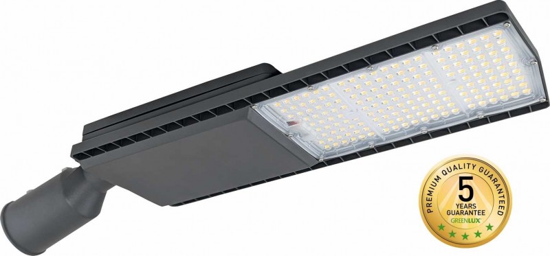 POULIČNÍ SVÍTIDLO LED SMD Vhodné na nasvětlení venkovních prostor (např. ulice, chodníky, průmyslové objekty, komunikace s běžným provozem apod.) Těleso svítidla tvoří odolný hliníkový odlitek, vyzařování světla v úhlech 150°x90°zajišťuje polykarbonátová optika. Napájení zajišťuje vestavěný LED driver s konstantním proudem. Vysokou světelnou účinnost (přes 140lm/W) zajišťují kvalitní LED čipy typu SMD 2835. Kompenzovaný jalový výkon (PF> 0,9). Prachotěsnost a voděodolnost zajišťuje vysoký stupeň krytí IP65. Svítidlo je určeno pro montáž na sloup, nebo výložník o průměru 60mm v přímém směru nebo pod pravým úhlem, s možností polohování v rozsahu -15° / +15°. Pro preventivní ochranu je možné doobjednat předřazenou přepěťovou ochranu 10kV (GXOS333). Navrženo jako energeticky úsporná náhrada 1:1 za sodíková svítidla pouličního osvětlení. Ideální pro nové investice i pro modernizaci stávajících osvětlovacích systémů. Modernizace osvětlení umožňuje zachovat počet, rozteč a výšku aktuálně používaných osvětlovacích stožárů. Více než 2x nižší spotřeba elektrické energie v porovnání se sodíkovým osvětlením. Pětiletá záruka na celé svítidlo. |