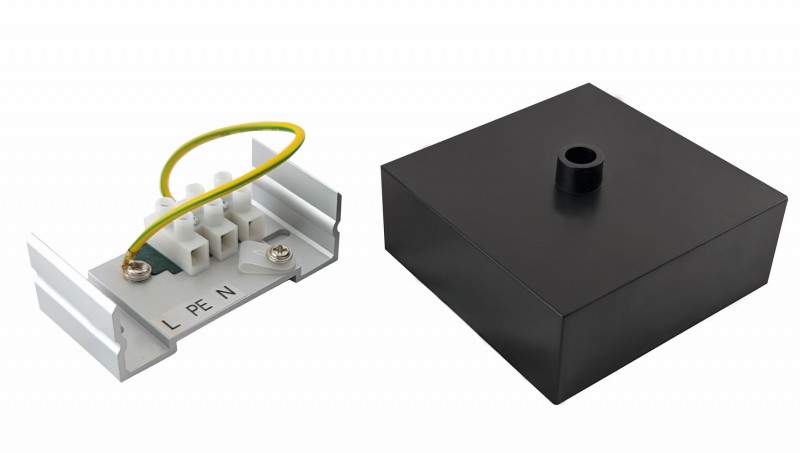Stropní plastový baldachýn v černé barvě. Určen pro estetické napojení stropního přívodního kabelu. Vybaven vnitřní šroubovou svorkovnicí. Určen pro zásvěsnou montáž svítidel LINIK Black. Pozn. Svítidlo LINIK má vyvedený pouze 25 cm dlouhý přívodní kabel. Pro odsazenou závěsnou montáž může být zapotřebí dokoupit 1,6 m dlouhý přívodní kabel s konektorovým zakončením. (GXOS410) |