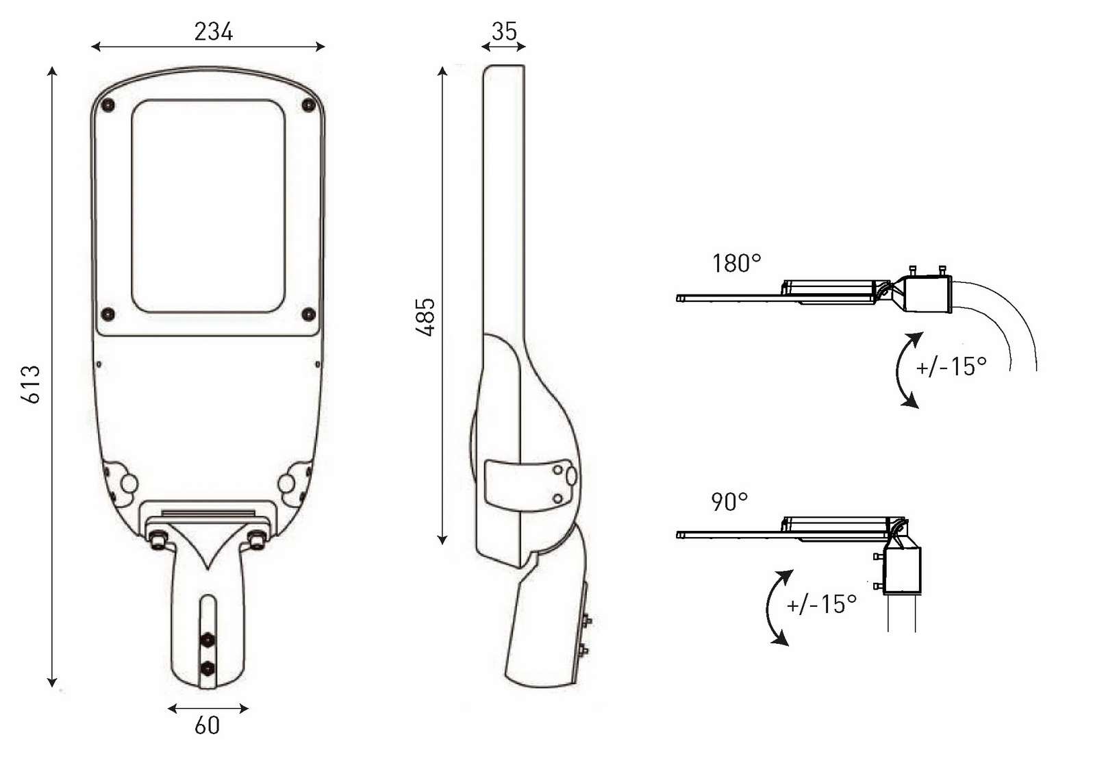 POULIČNÍ SMART SVÍTIDLO LED SMD • určeno k osvětlení venkovních prostor, zejména k osvětlení komunikací, ulic, uliček, chodníků, cyklostezek, parků, parkovišť, náměstí, volných ploch apod. • těleso svítidla: vysokotlaký hliníkový odlitek • práškový lak s nanotechnologií • barva tělesa svítidla: RAL (7012) • difuzor: tvrzené sklo • variabilní optický systém zajišťující přesné směrování světelného toku svítidla • výrazně vysoká světelná účinnost - 145lm/W • LED moduly s energeticky úspornými diodami značky PHILIPS se světelnou účinností 175lm/W • vysoce kvalitní napájecí zdroj MEAN WELL • vysoká odolnost vůči povětrnostním podmínkám - prachotěsný a vodotěsný (IP65) • vysoká odolnost proti mechanickému poškození (IK09) • možnost instalace na vertikální a horizontální výložníky (60 mm) • regulovatelné rameno s možností naklápění • hladké těleso bez žebrování nezadržuje nečistoty • beznástrojový přístup do svítidla • odpojovací svorkovnice pro bezpečný servis • oddělený prostor pro napájecí a světelný zdroj bez nežádoucího efektu blikání a mihotání světla (Flicker Free) • nulová hodnota horní účinnosti svítidla (ULOR 0%) při náklonu 0° • spotřeba energie v pohotovostním režimu do 0,5W • aktivní funkce PFC (APFC) • kompenzovaný jalový výkon (Pf>0,95) • tři možné způsoby regulace: 0-10V; potenciometr; PWM • přepěťová odolnost 6kV (L/N-PE) / 4kV (L-N) • přídavná přepěťová ochrana SPD: 10kA/10kA, Uoc: <=10kV / 20kV • zkratová, nadproudová a tepelná ochrana • konstrukce zajišťující efektivní pasivní chlazení • pětiletá záruka na kompletní svítidlo • desetiletá záruka na těleso svítidla • splňuje požadavky evropských norem EN a mezinárodních norem IEC • certifikace ENEC na napájecí zdroj Možnost individuální konfigurace verze svítidla: • teplota barvy světla Tc/CCT: 2200K, 2700K, 3000K, 4200K, 5000K, 6500K • index podání barev Ra/CRI: 70, 80, 90 • volitelný příkon svítidla v rozmezí: 10-75W, 75-100W, 75-150W (dle potřeby, realizace v pouzdrech různých velikostí) • BIODYNAMIC 50W s automaticky se měnící teplotou barvy světla (2200K <> 4200K, 2700<>4200K) • ASTRODIM s plánem změny intenzity osvětlení v závislosti na naprogramovaném harmonogramu • DALI D4a s digitálním ovládáním • regulace systémem Zhaga s možností ovládání pomocí napájecí • instalace se senzorem soumraku: ON: 6 lx / OFF: 50 lx |