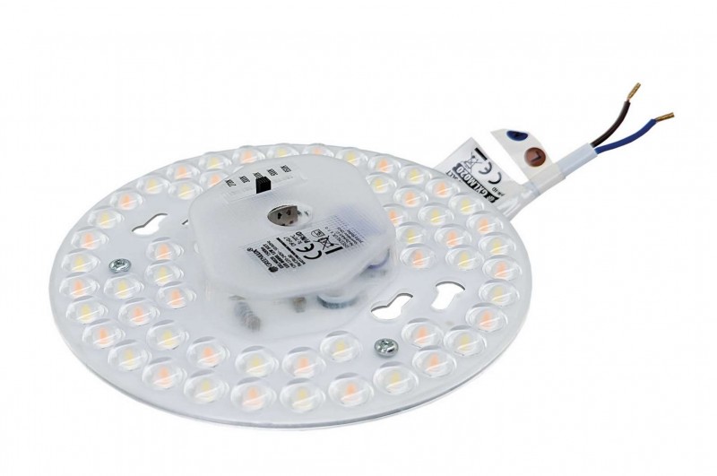 MAGNETICKÁ DESKA LED PCB Univerzální LED modul pro rychlou montáž. Pomocí přepínače je možné změnit teplotu chromatičnosti v pěti stupních 2700/3000/4000/5000/6500 K. Náhrada za málo efektivní světelné zdroje - klasické a úsporné žárovky. Snadná montáž přisazením ke kovové montuře svítidla pomocí tří magnetických patek. Patky jsou v roztečích 80mm, vysoké 15mm. Integrovaný zdroj napájení určený k přímému zapojení na síťové napětí 230V. Plastový kryt s optikou zajišťuje rovnoměrný rozptyl světla v úhlu 155°. Vysoká světelná účinnost 125lm/W. V porovnání s klasickou žárovkou uspoří až 88% spotřeby elektrické energie. |